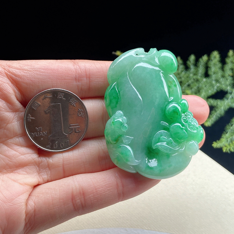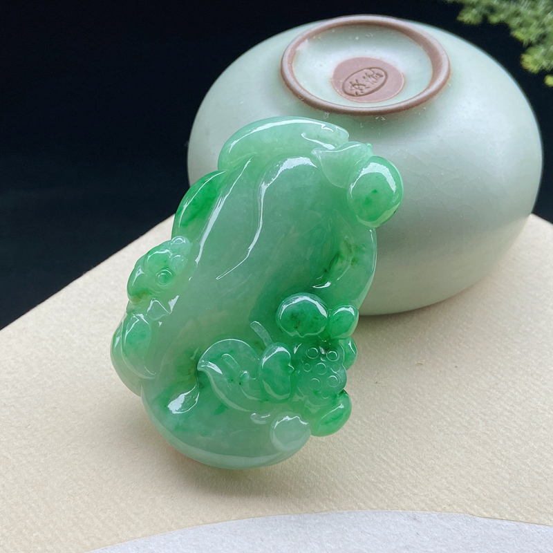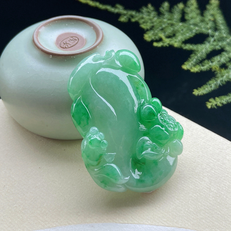 • 糯冰种飘翠翡翠年年有余吊坠
