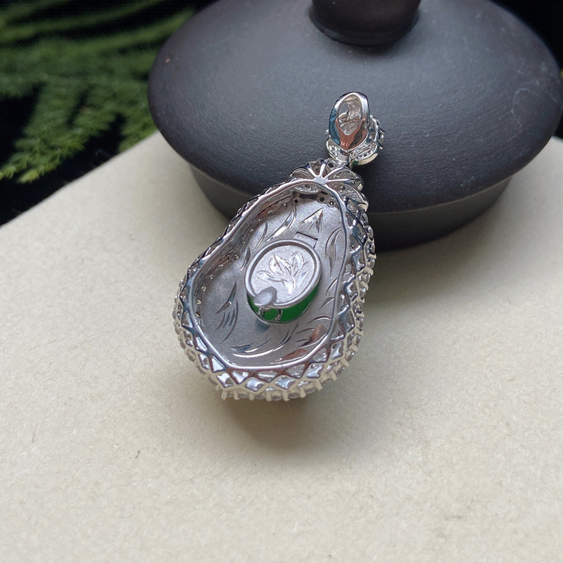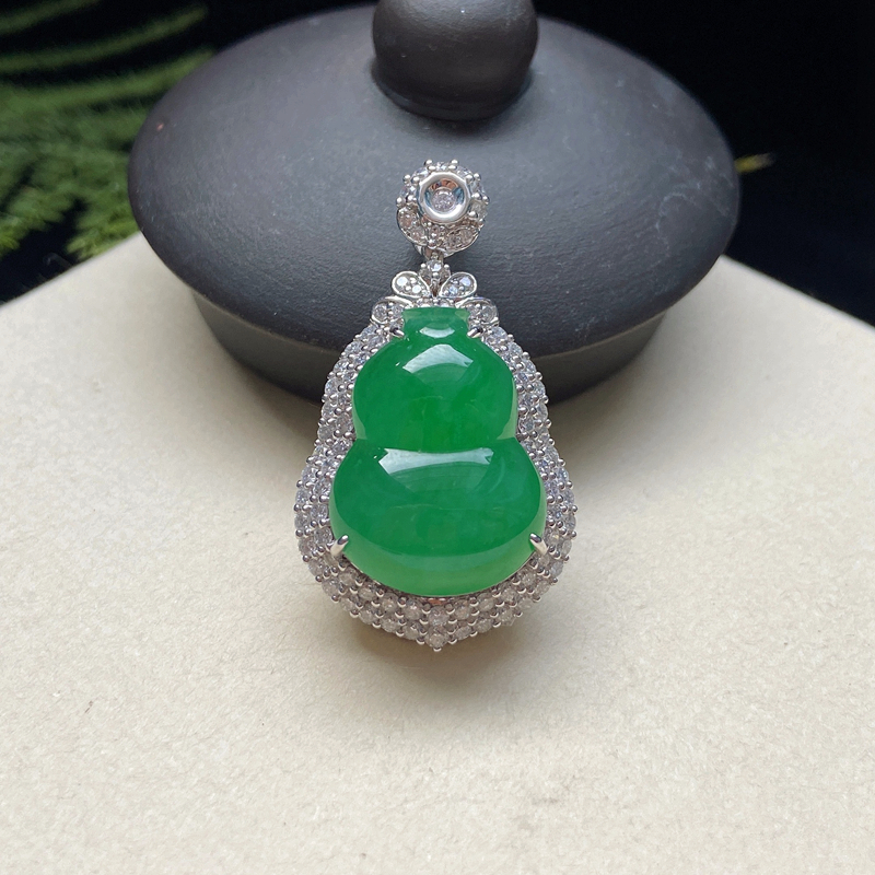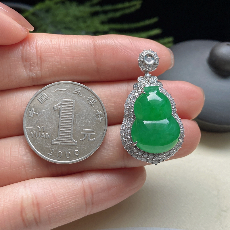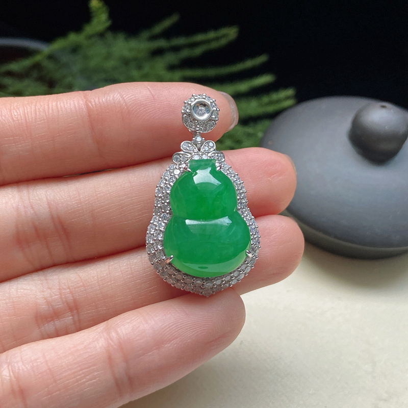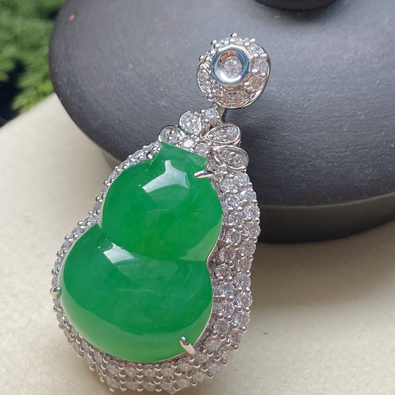 • 18K糯冰种翠绿翡翠葫芦吊坠