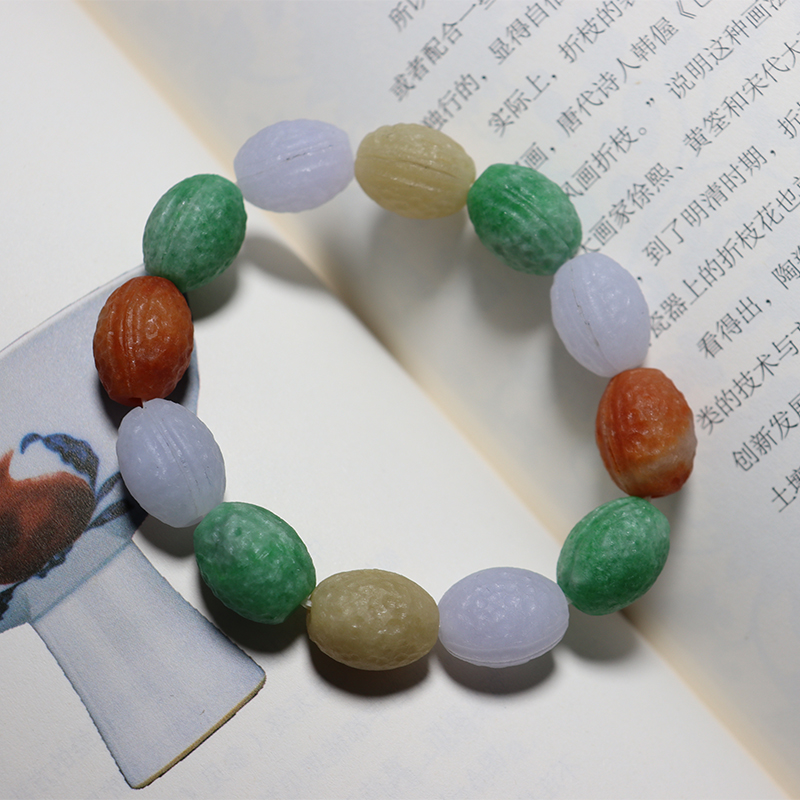 • [名  称] 糯冰种三彩翡翠花生手串(单件)