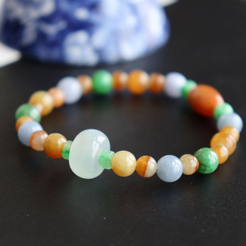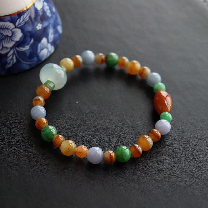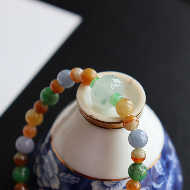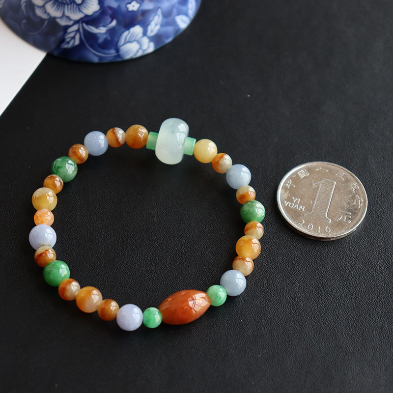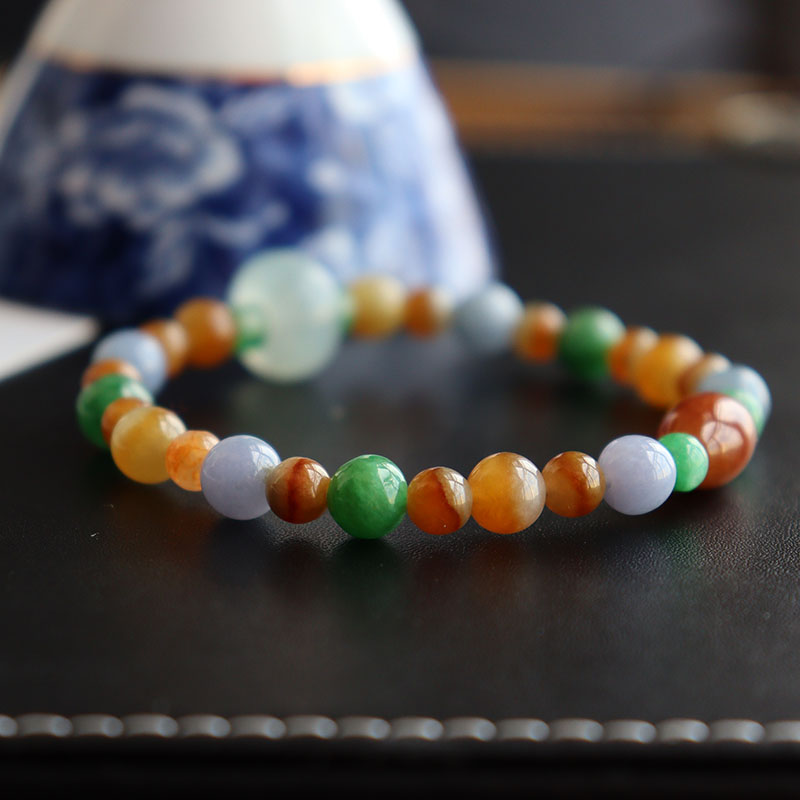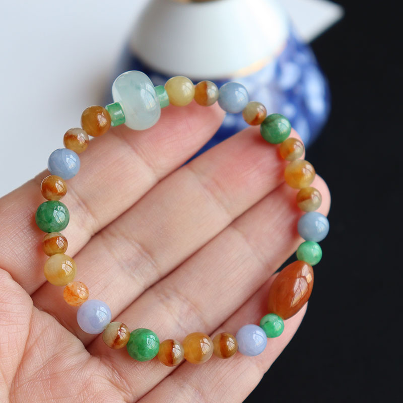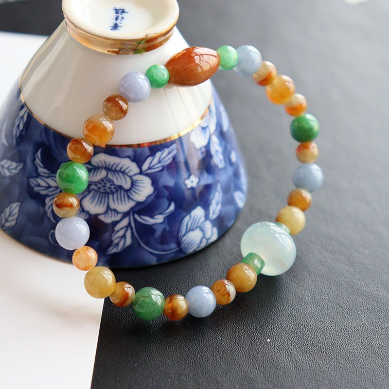 • 糯冰种三彩翡翠圆珠手链