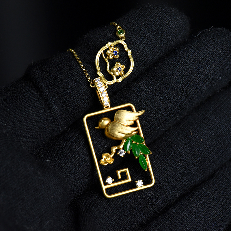 • [名  称] 18K糯冰种深绿色翡翠报喜吊坠