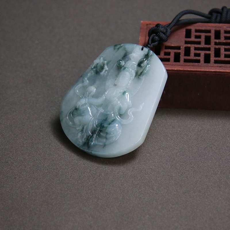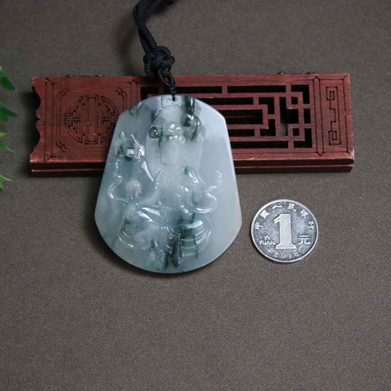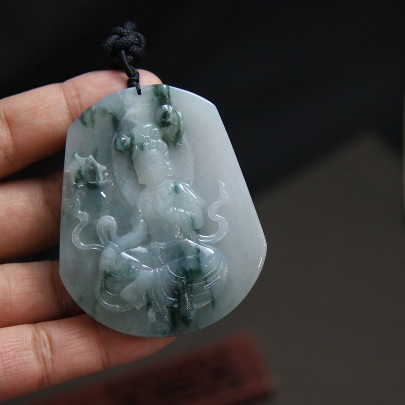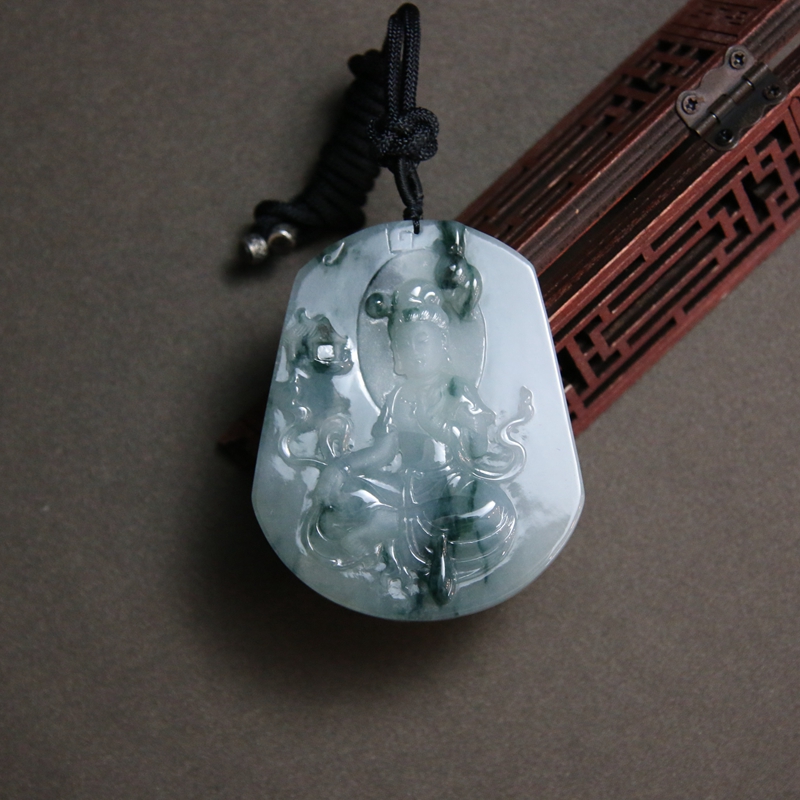 • 糯冰种飘花翡翠观音吊坠