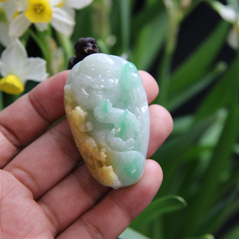 • 糯冰种三彩翡翠逍遥佛吊坠