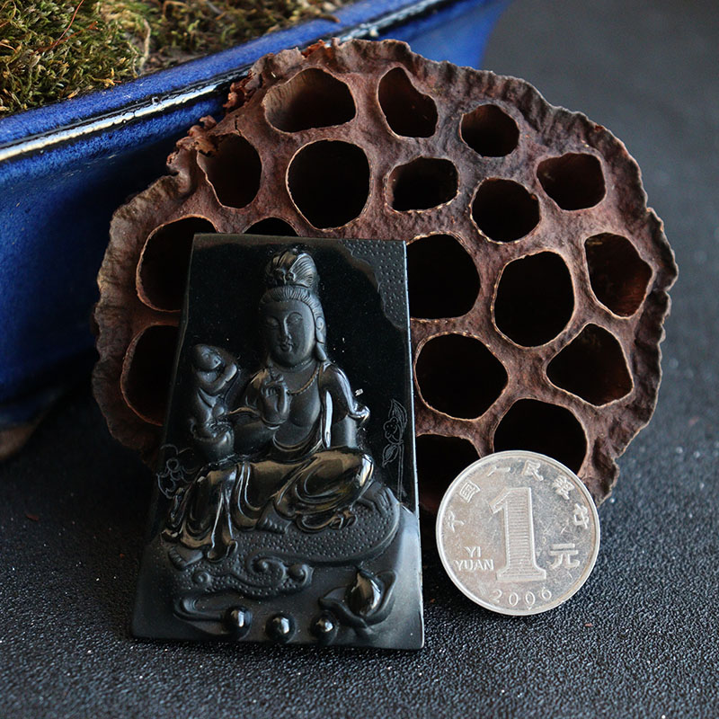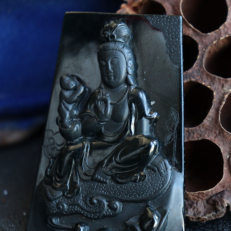 • [名  称] 糯冰种墨翠翡翠送子观音吊坠