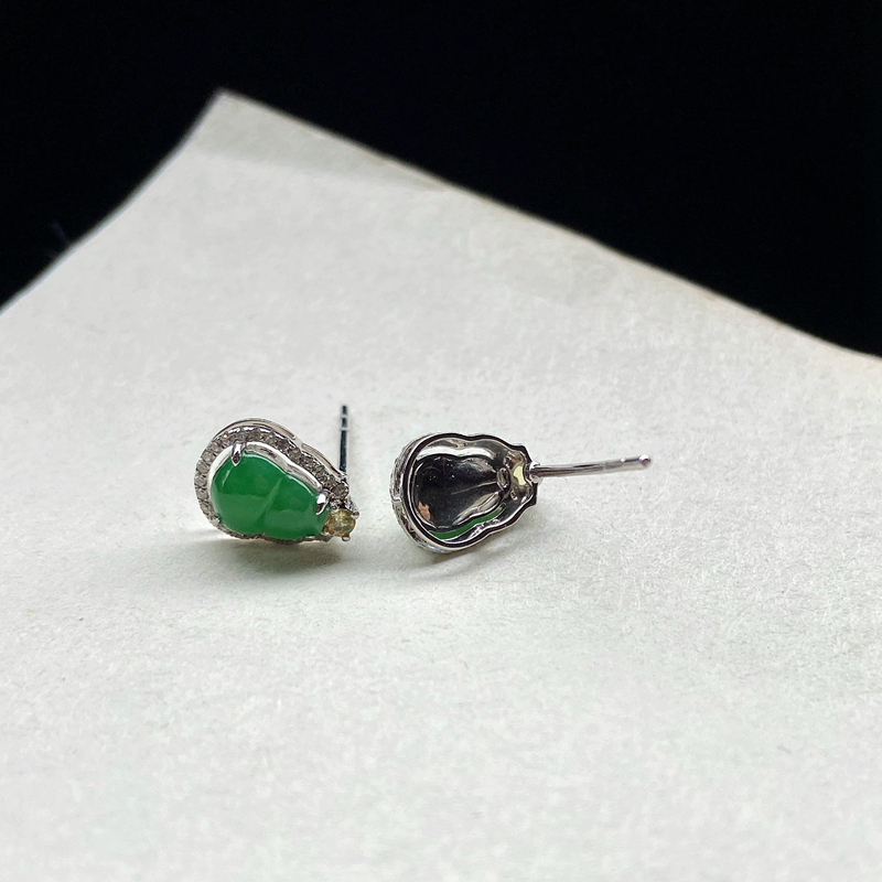 • [名  称] 18K糯冰种翠绿翡翠葫芦耳钉