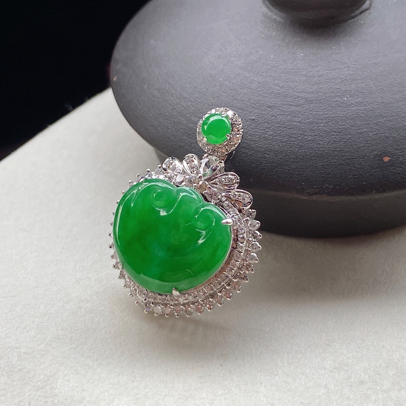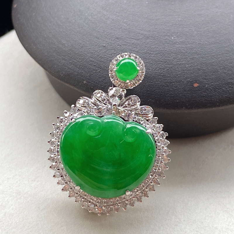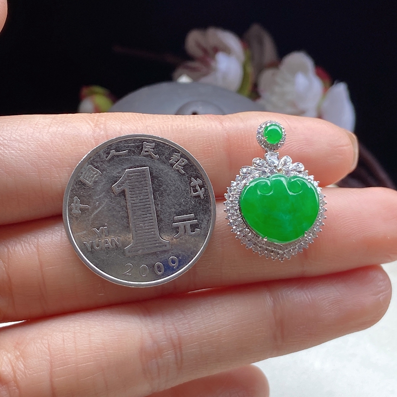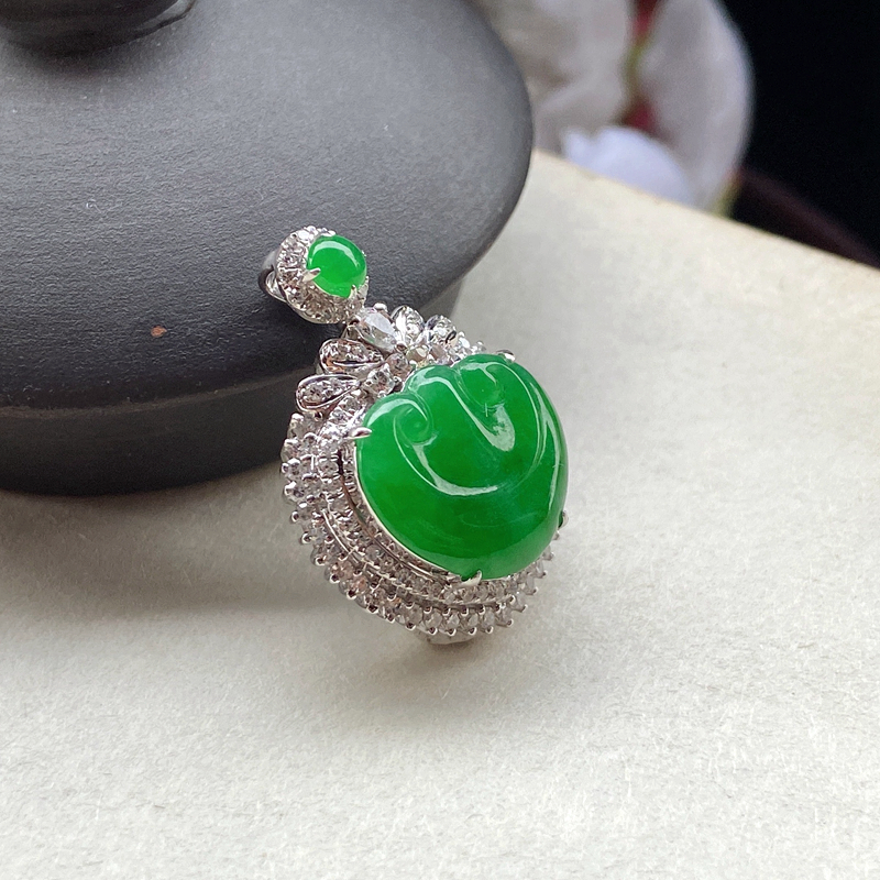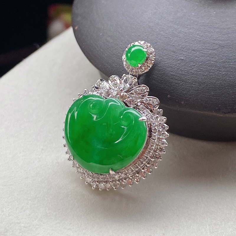 • [名  称] 18K糯冰种翠绿翡翠如意吊坠