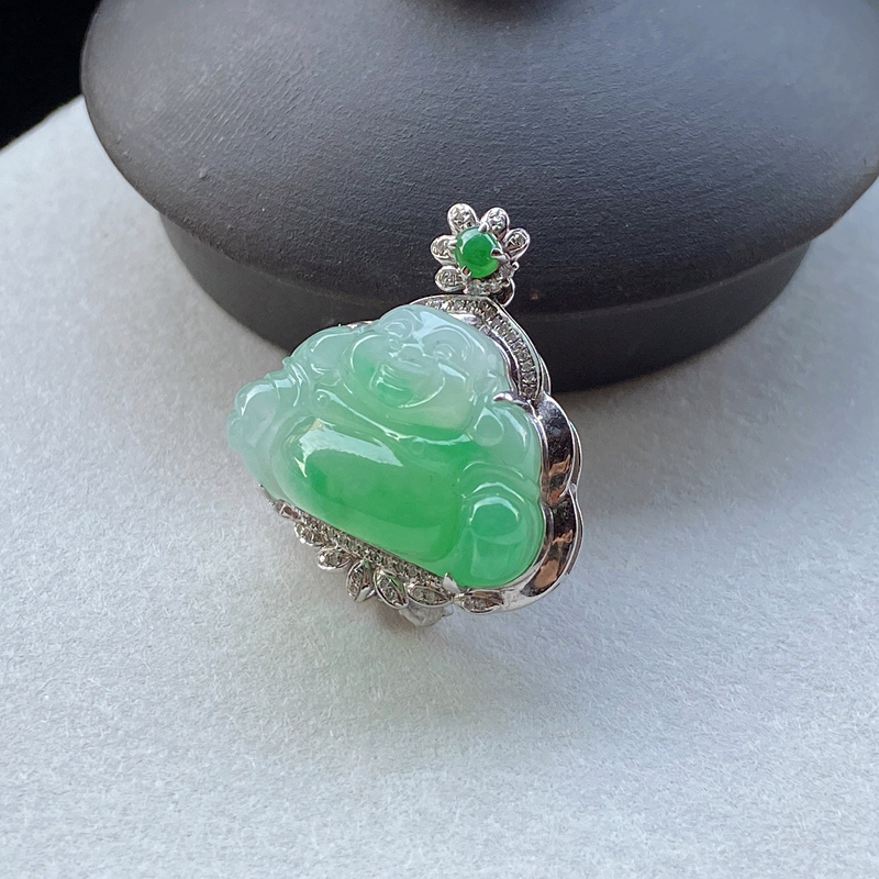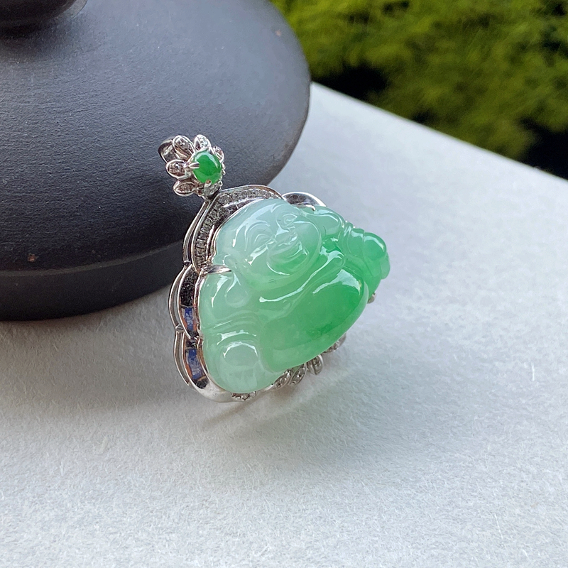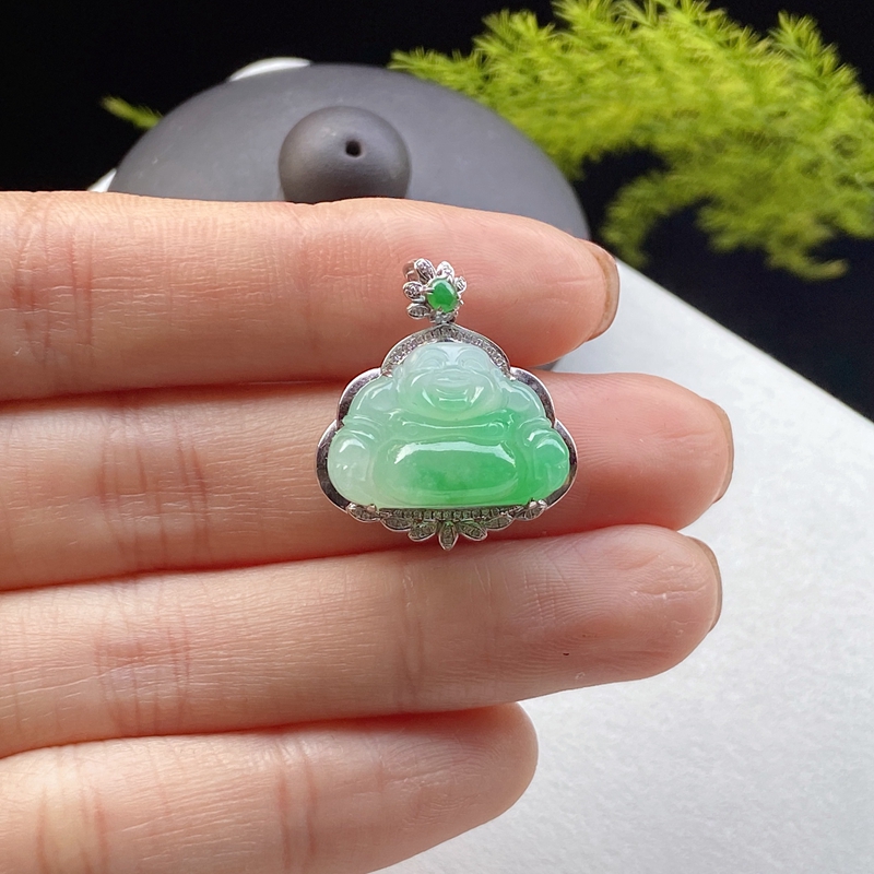 • [名  称] 18K糯冰种浅绿翡翠弥勒佛吊坠