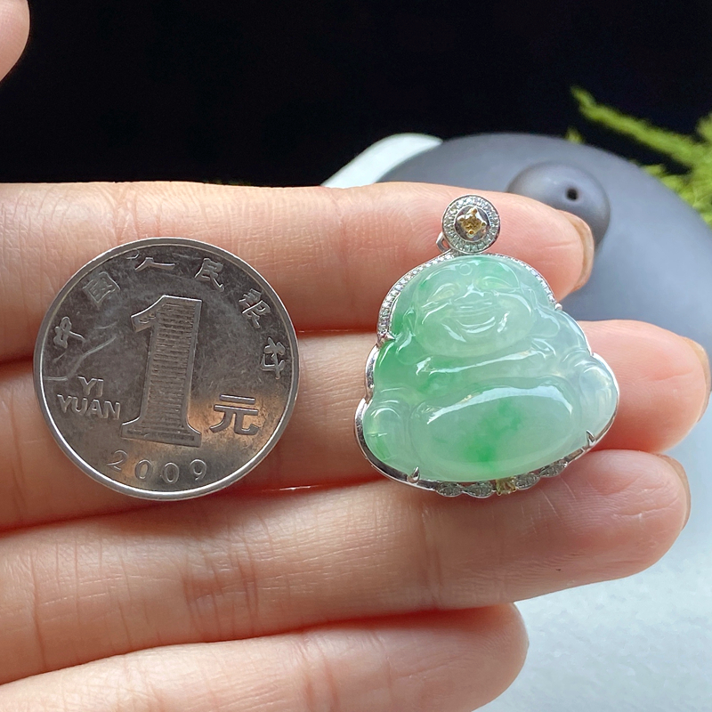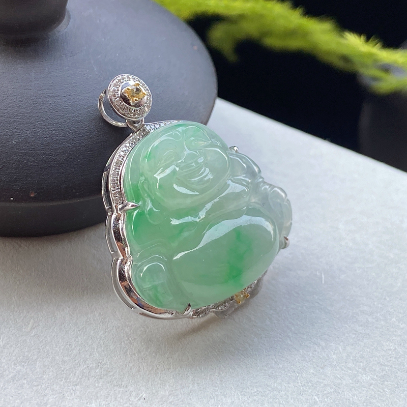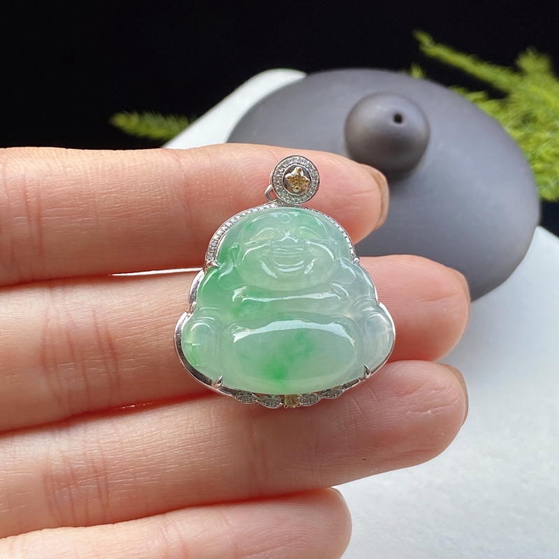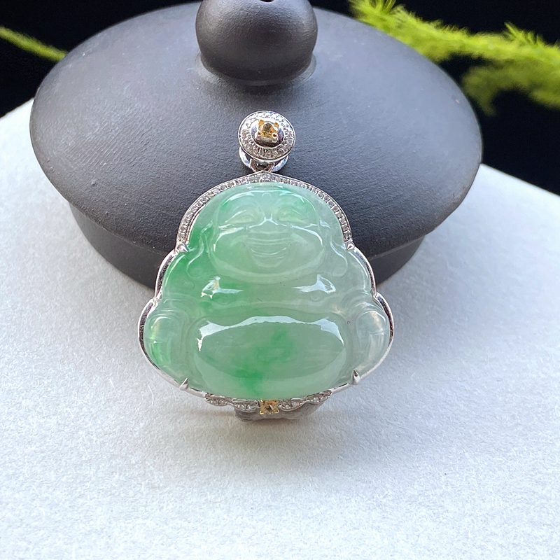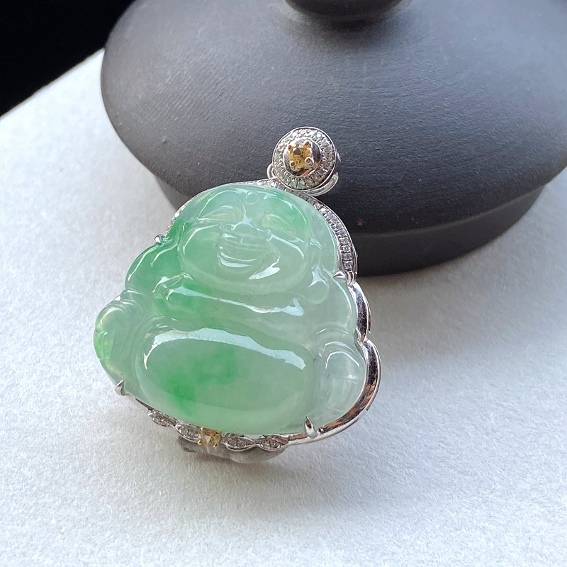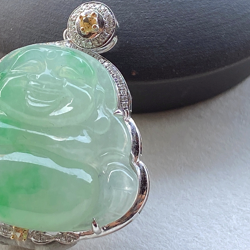 • [名  称] 18K糯冰种浅绿翡翠弥勒佛吊坠