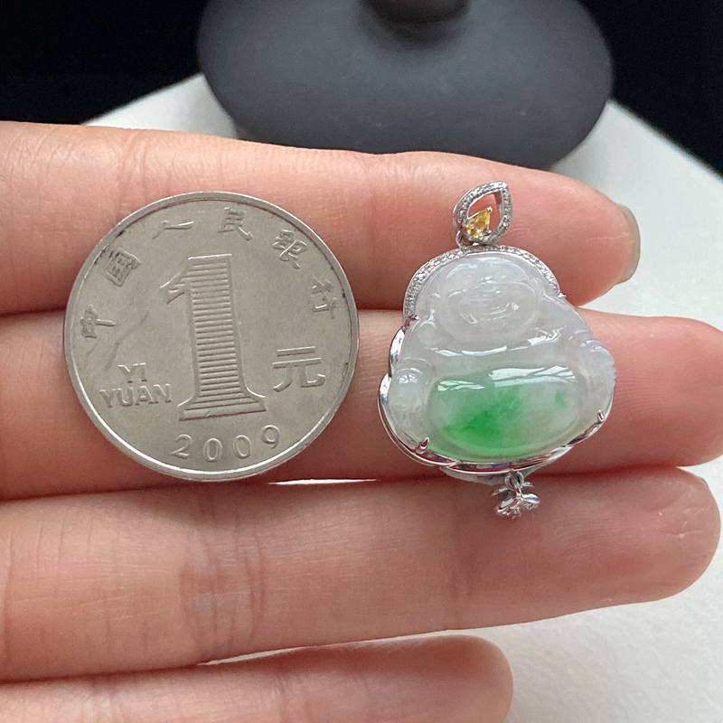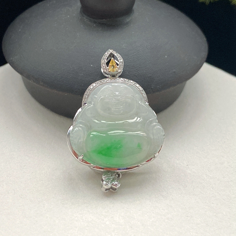 • [名  称] 18K糯冰种带色翡翠弥勒佛吊坠