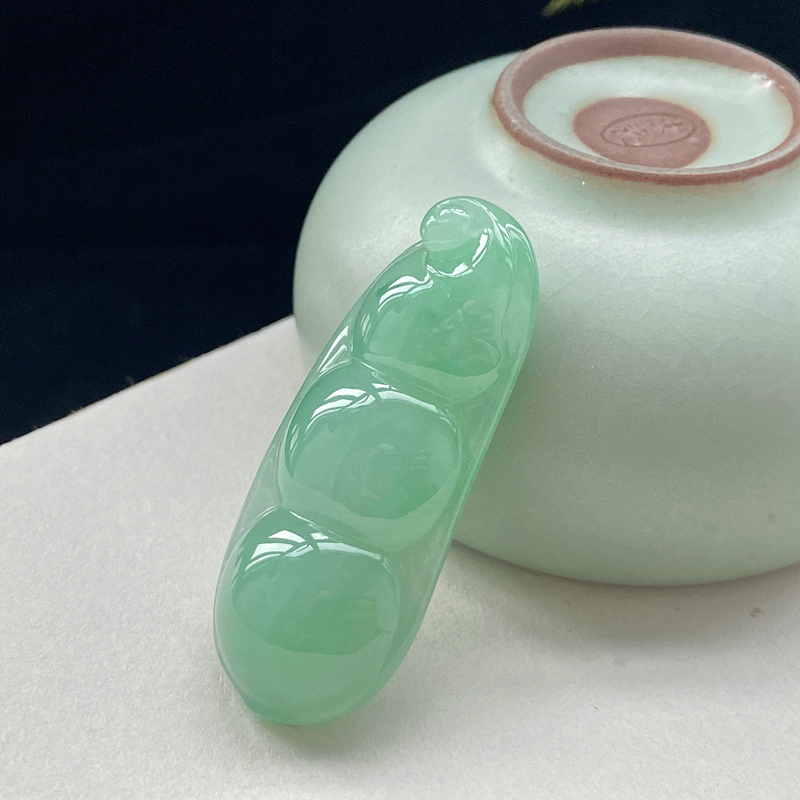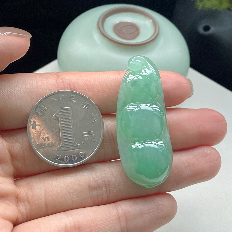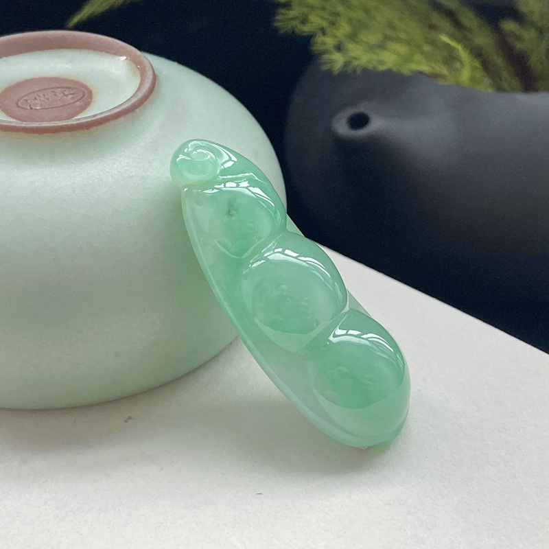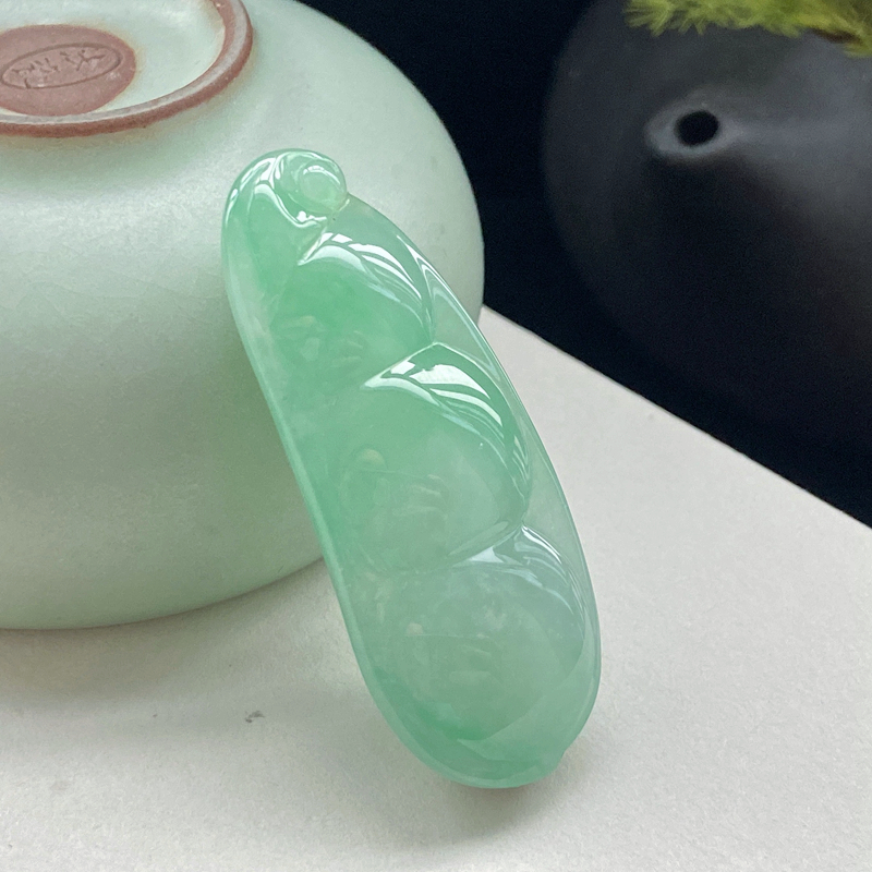 • [名  称] 糯冰种浅绿翡翠福豆吊坠