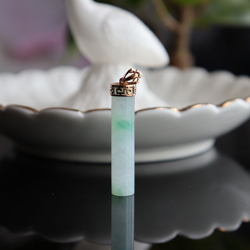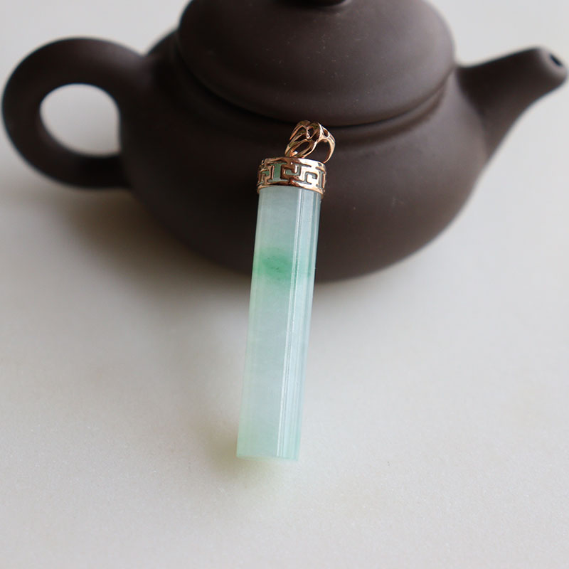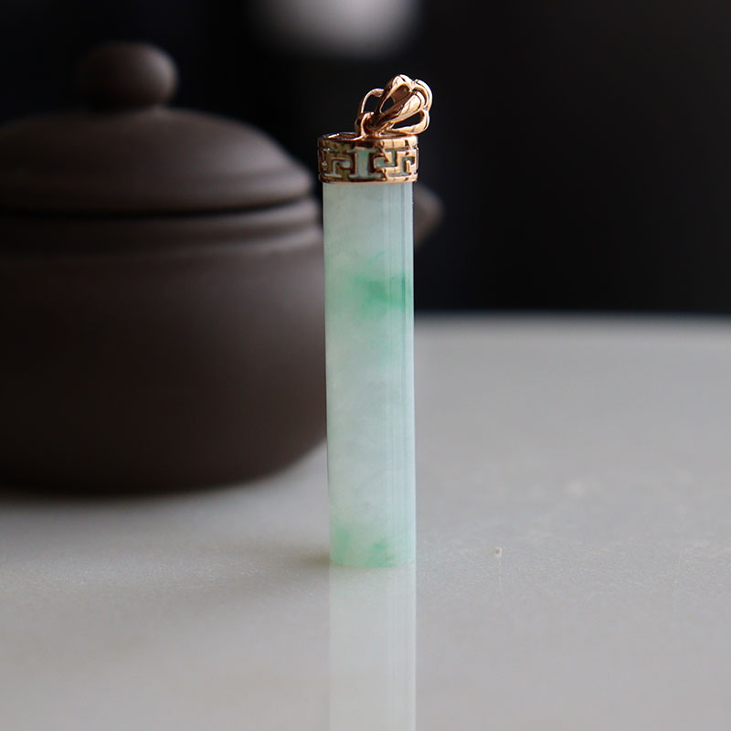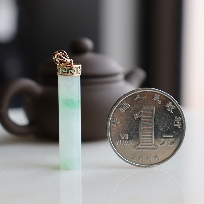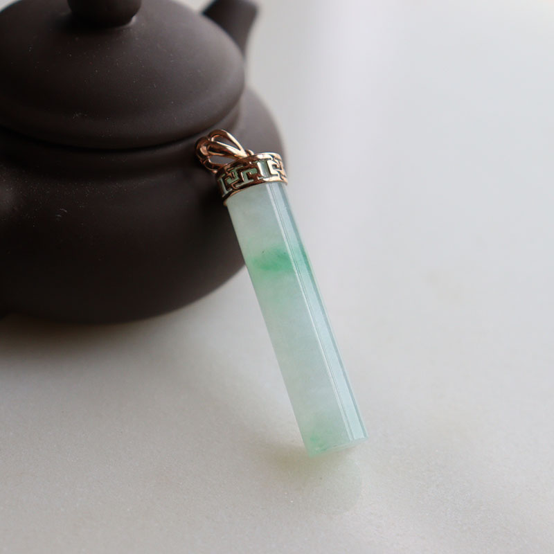 • 18k糯冰种飘花翡翠无事牌吊坠