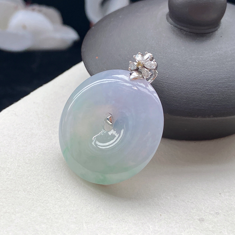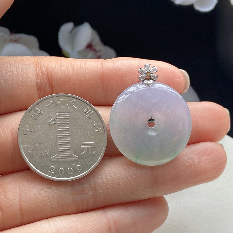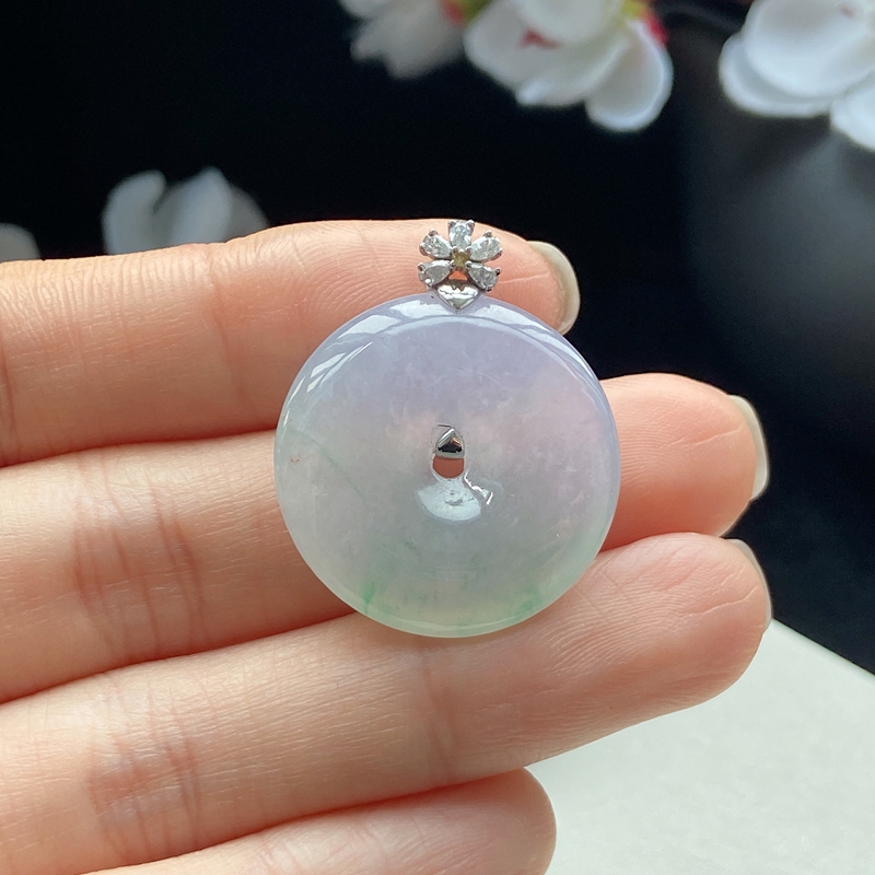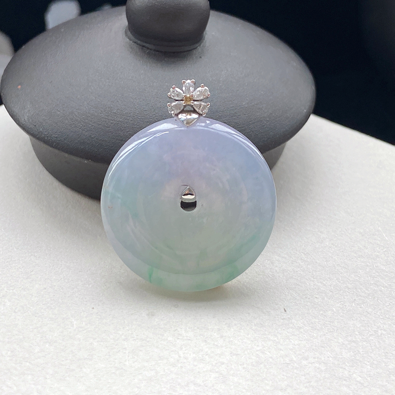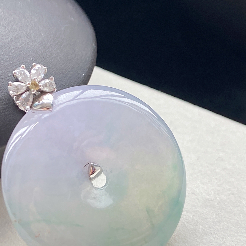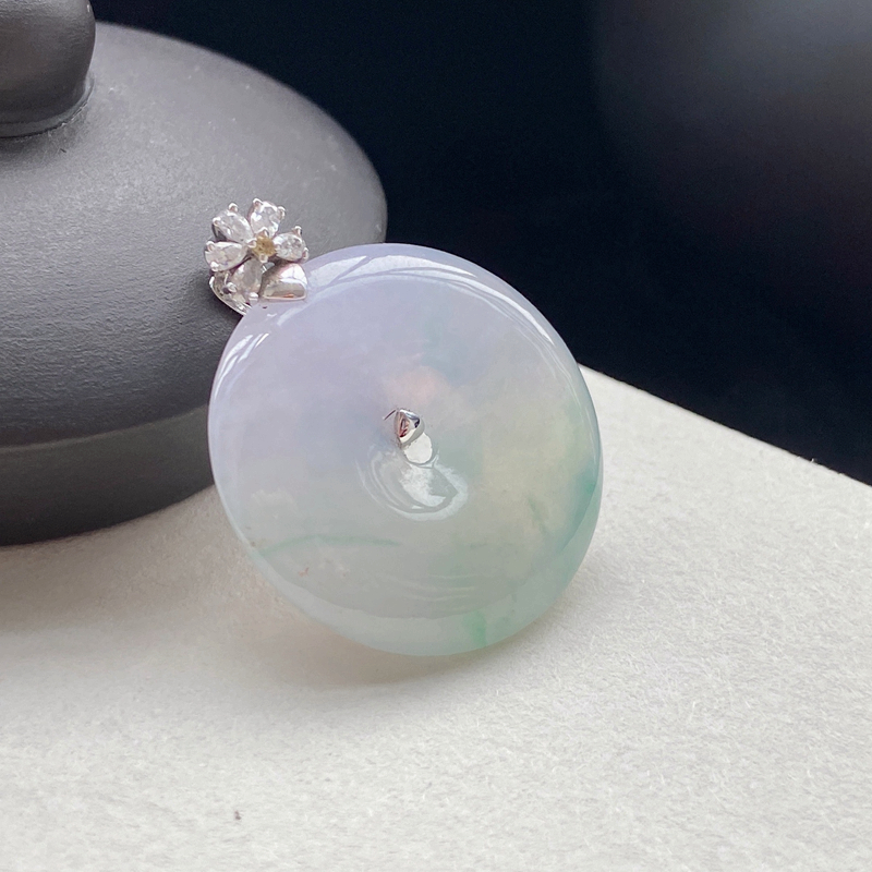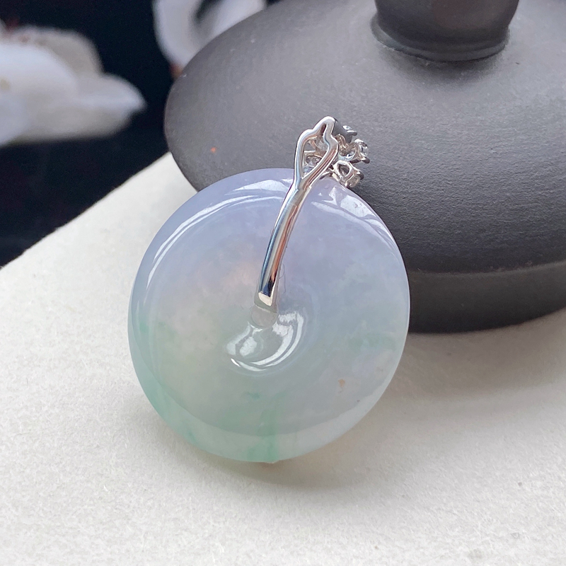 • [名  称] 18K糯冰种浅春带彩翡翠平安扣吊坠