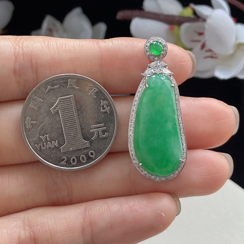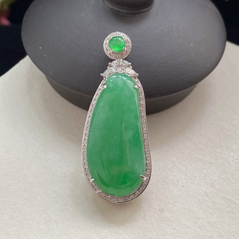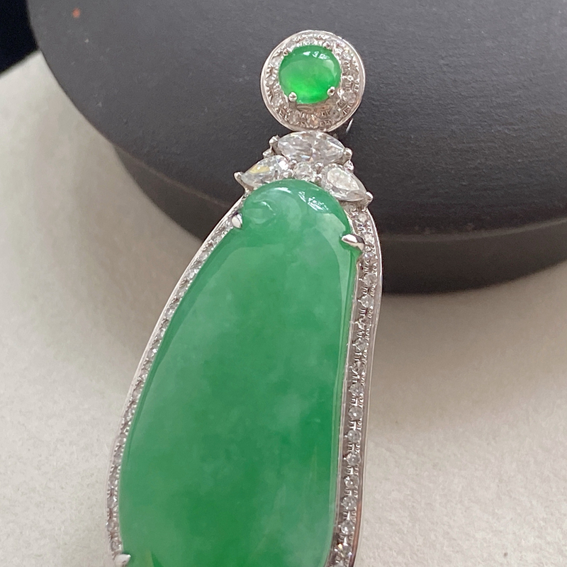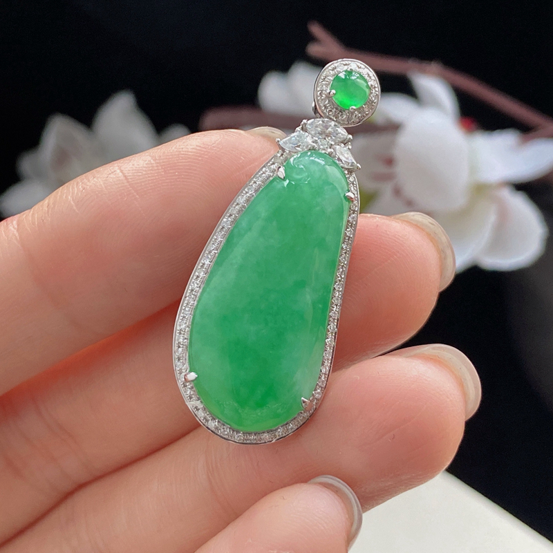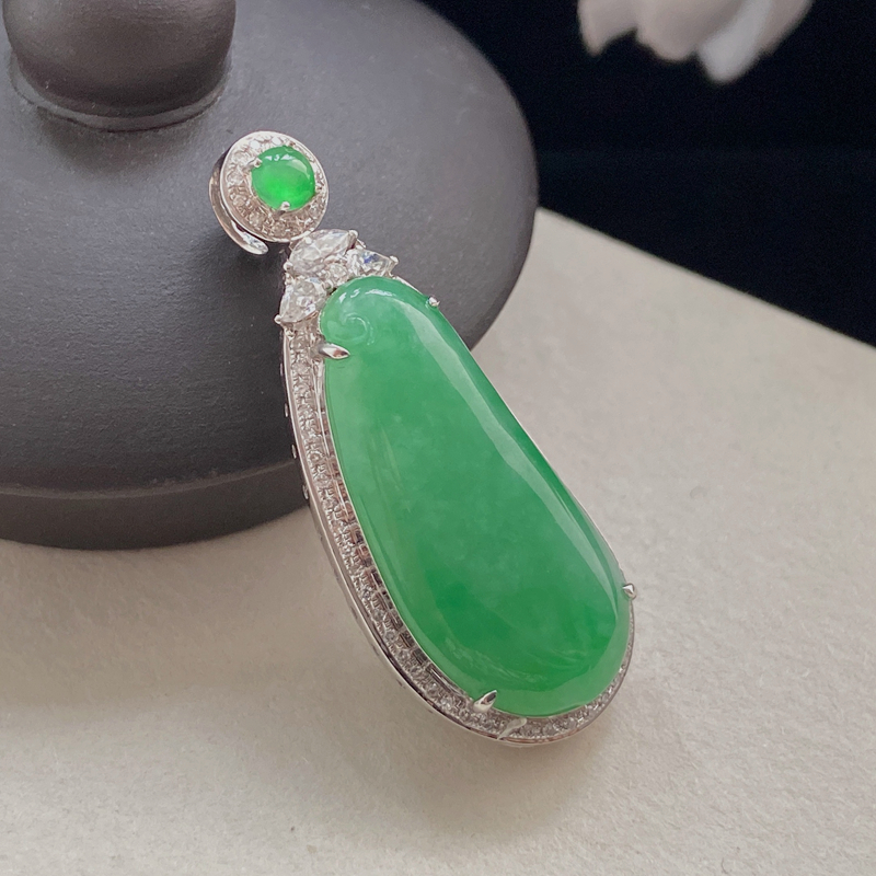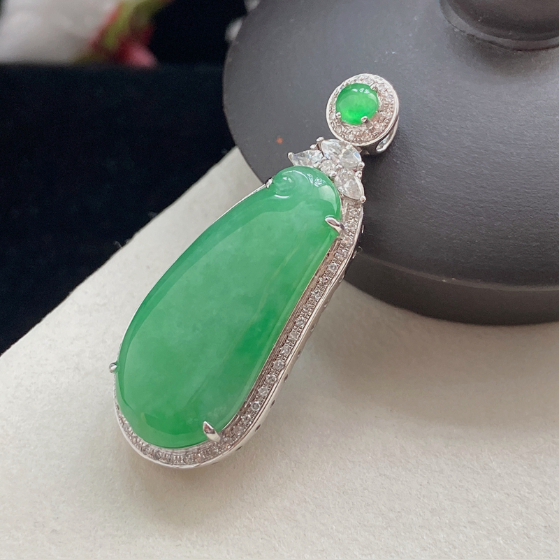 • 18K糯冰种豆绿翡翠福瓜吊坠