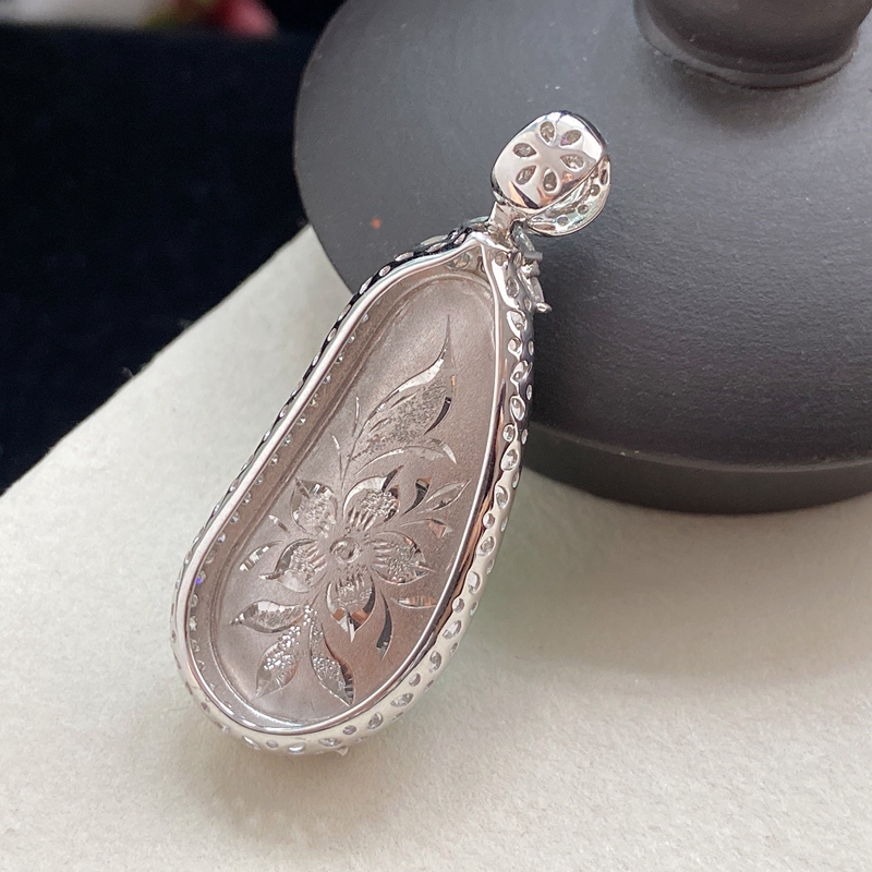 为了让珠宝的价值得到更大程度的体现,每一个作品都是根据料子本身做专业的设计,让每件作品都有灵魂。设计好以后会根据设计创意做专业的镶嵌或雕刻,确保每个接口都严丝合缝,每一刀都流畅自如