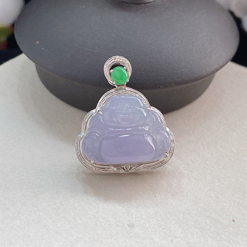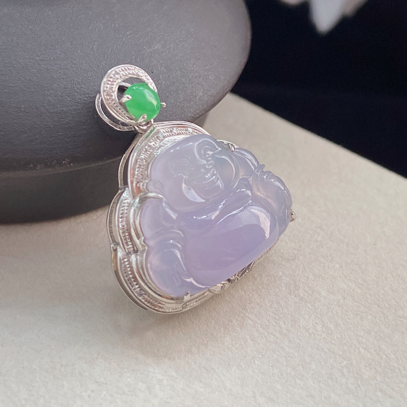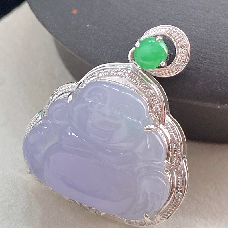 • 18K糯冰种浅紫翡翠弥勒佛吊坠