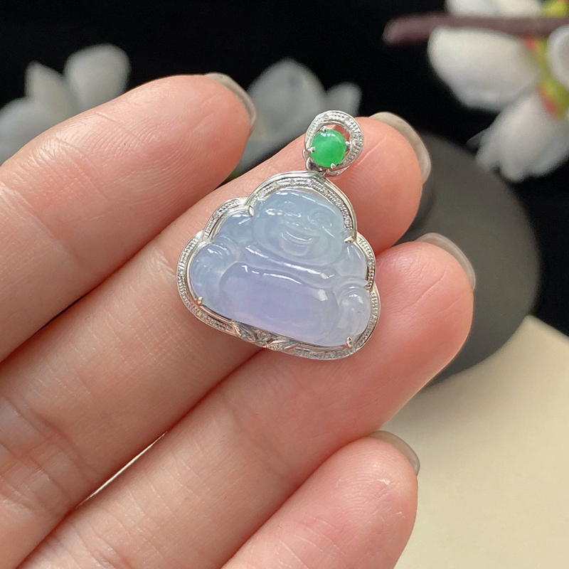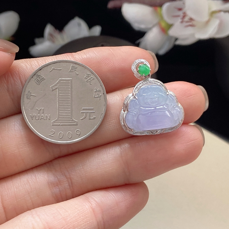• [名  称] 18K糯冰种浅紫翡翠弥勒佛吊坠