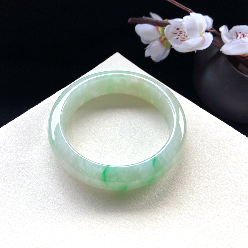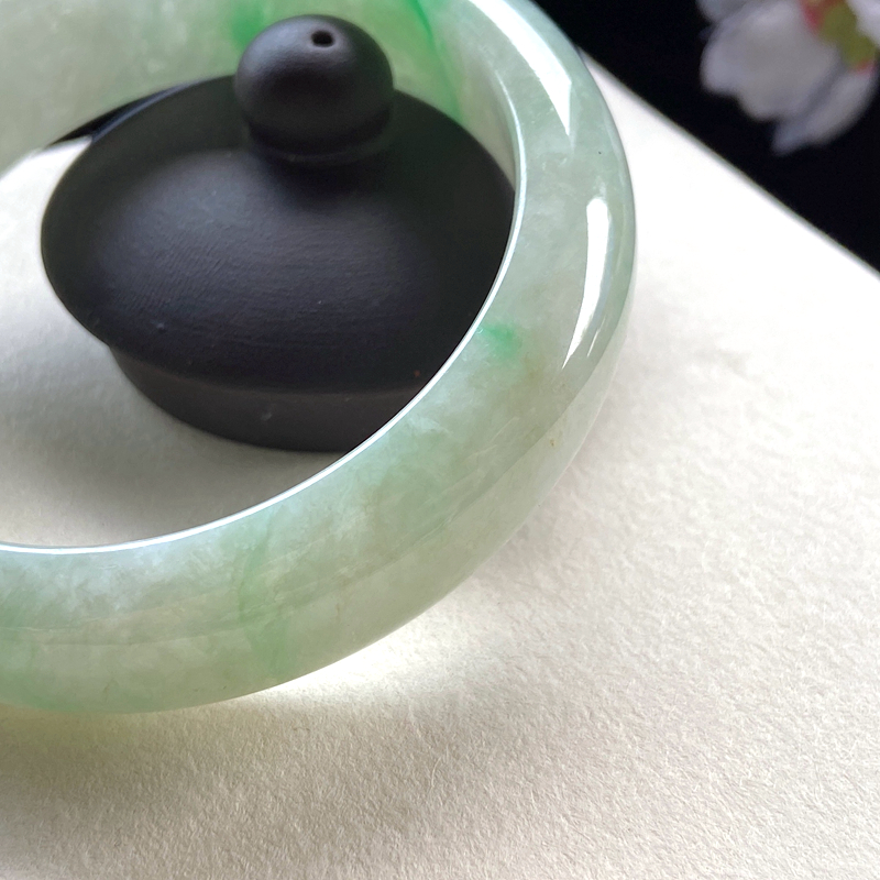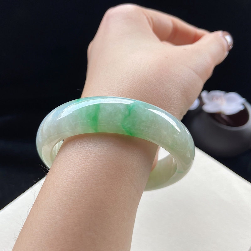 • [名  称] 55mm糯冰种带色翡翠平安镯
