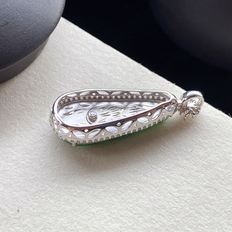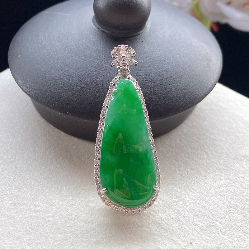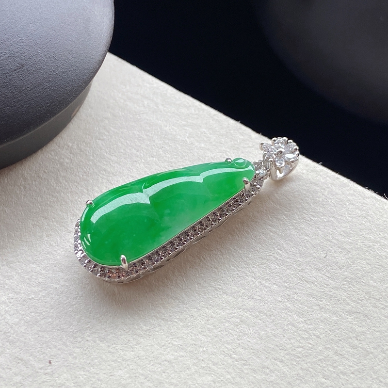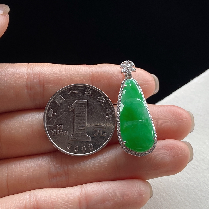 • [名  称] 18K糯冰种翠绿翡翠福豆吊坠