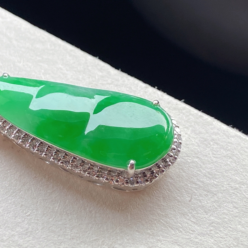 • 18K糯冰种翠绿翡翠福豆吊坠