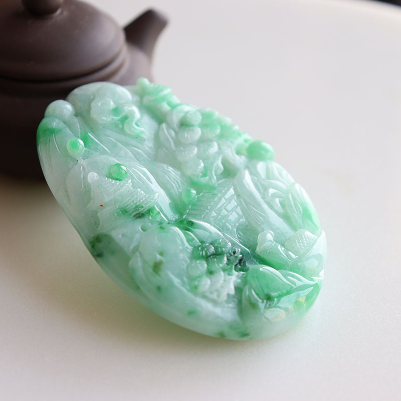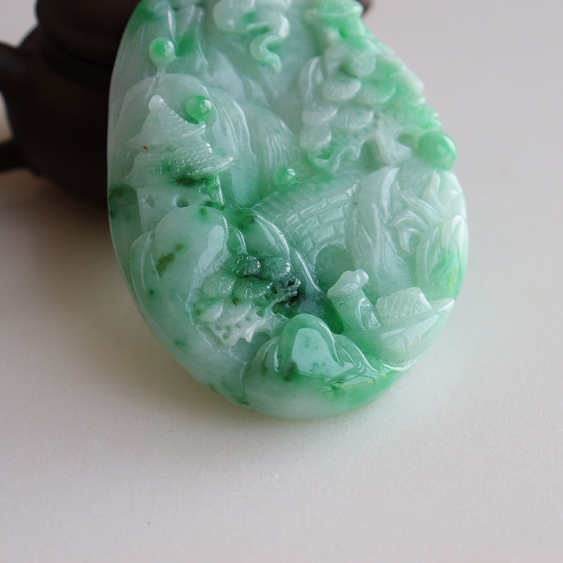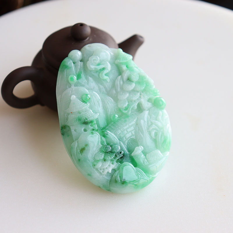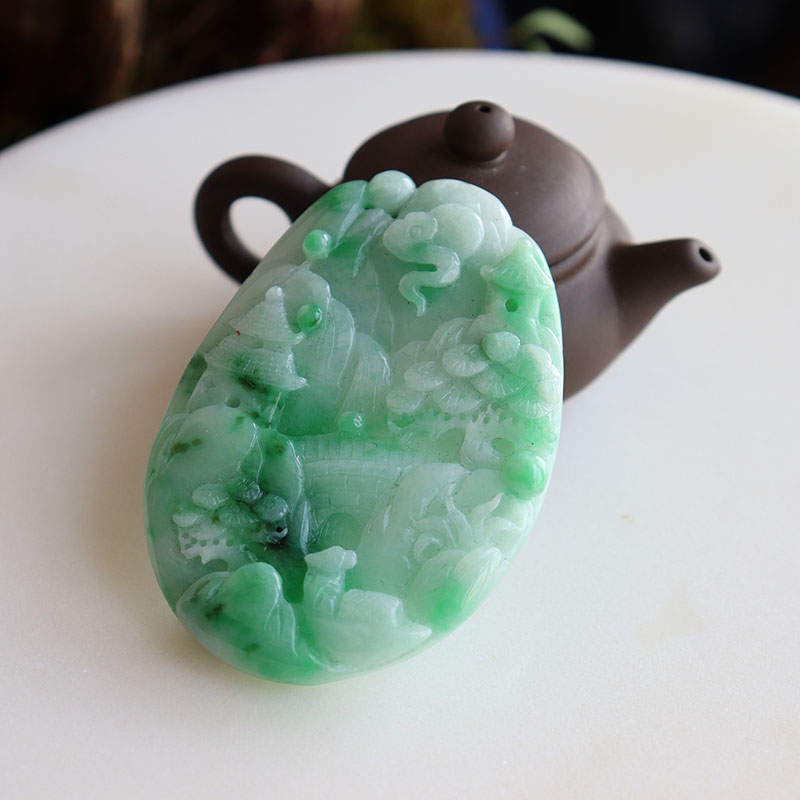 • [名  称] 糯冰种飘翠翡翠山水吊坠