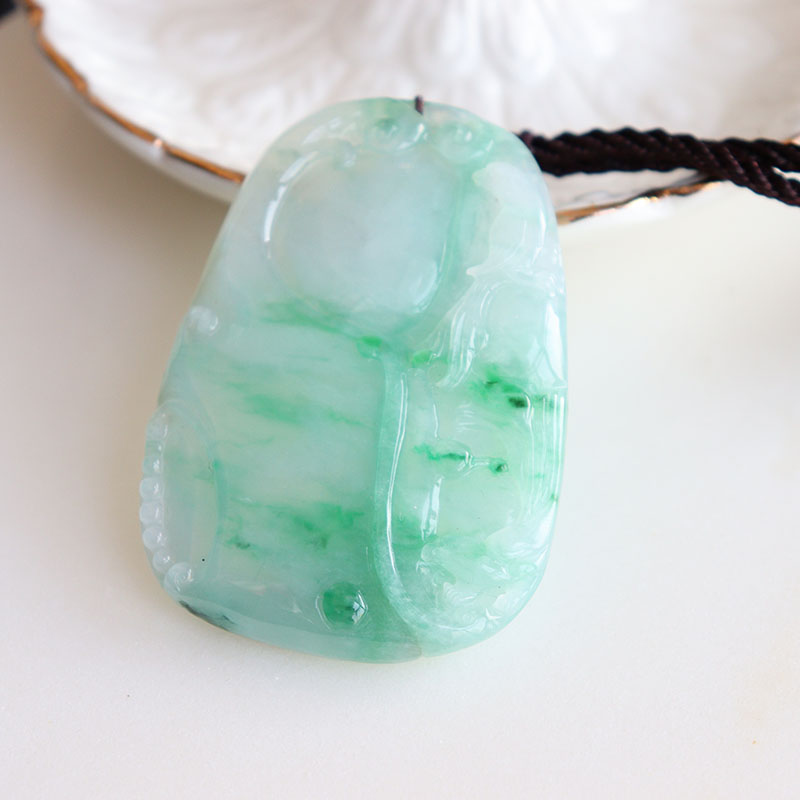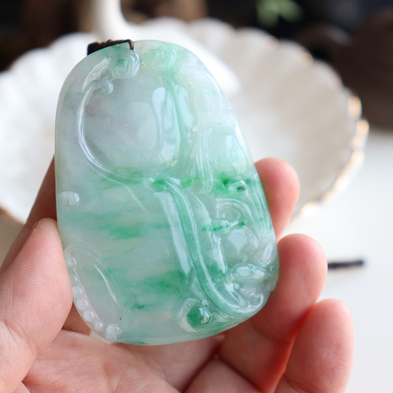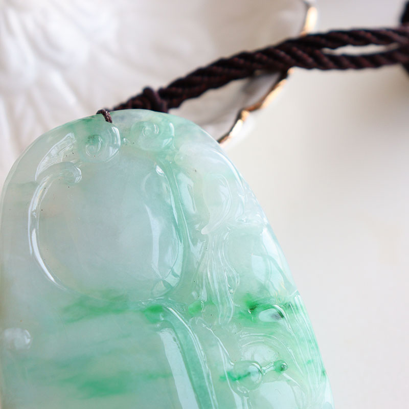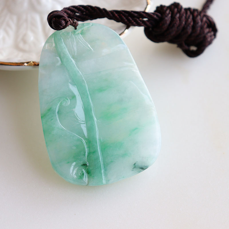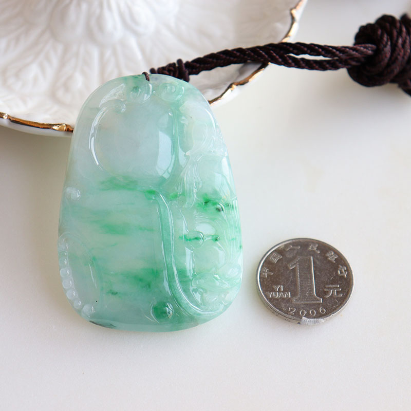 • 糯冰种飘翠翡翠喜上枝头吊坠