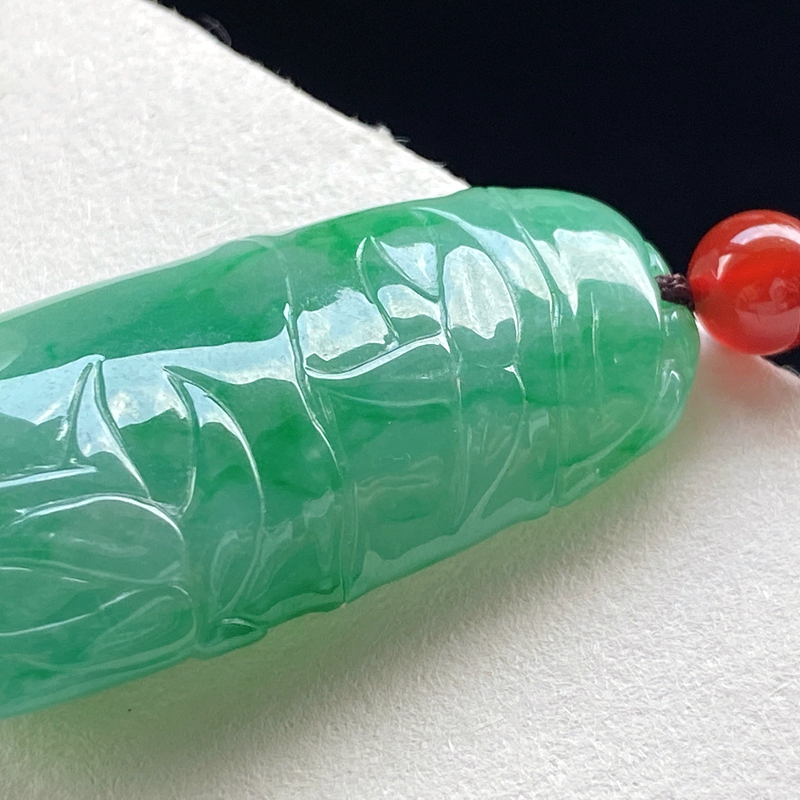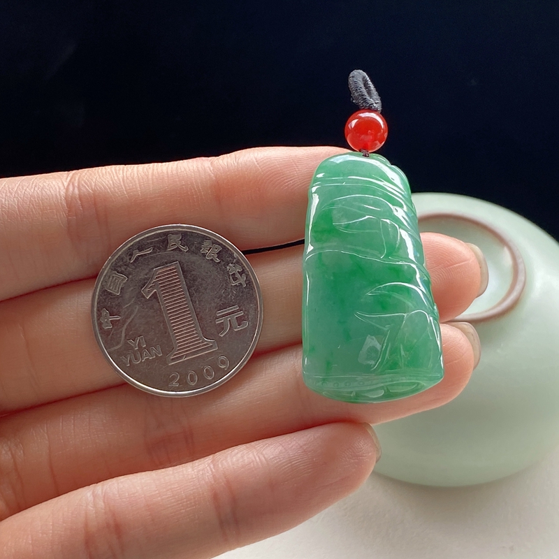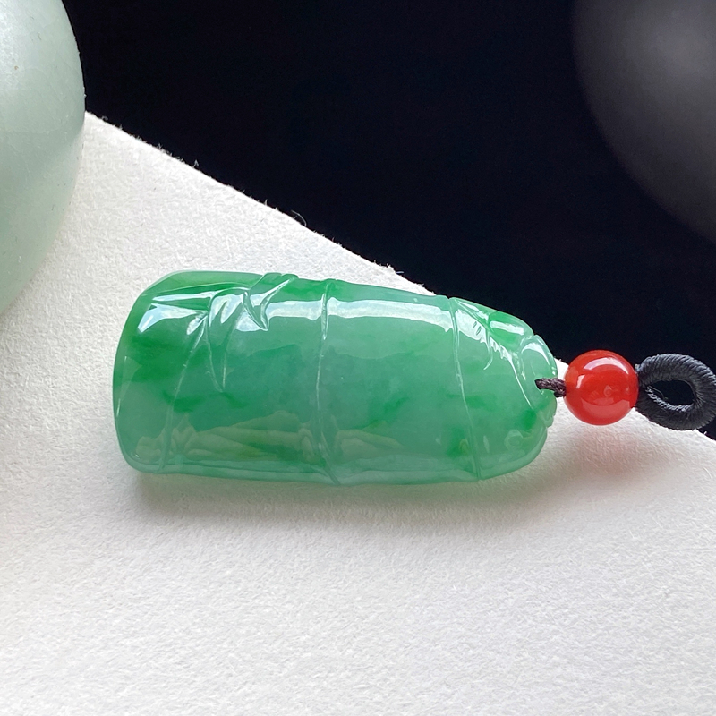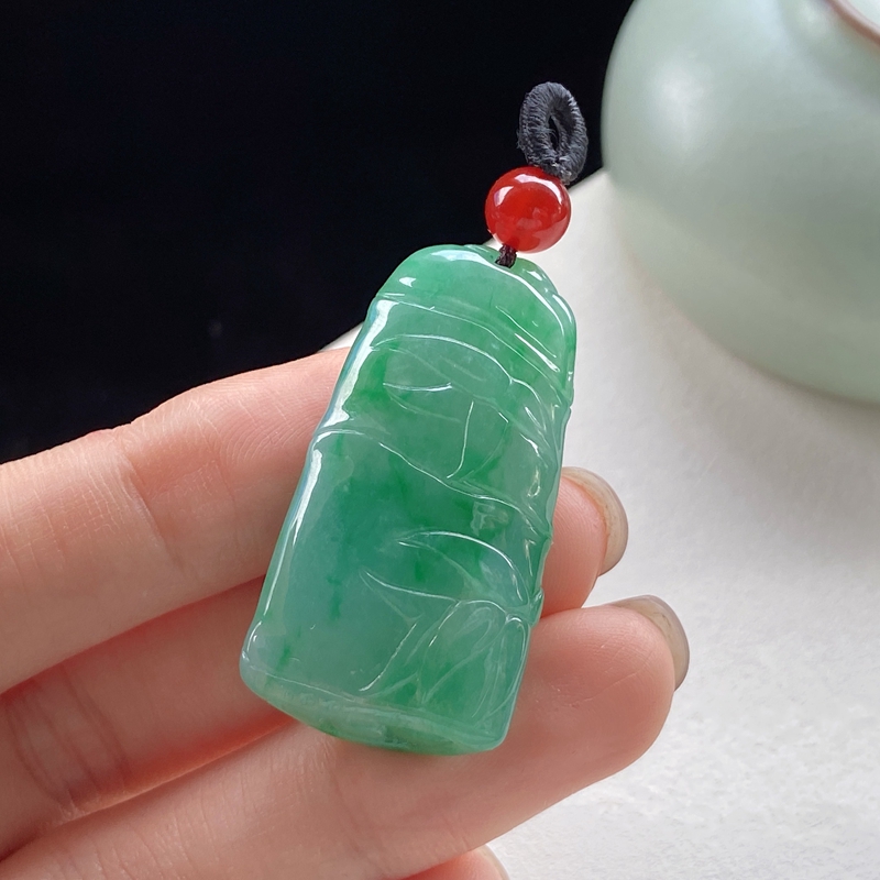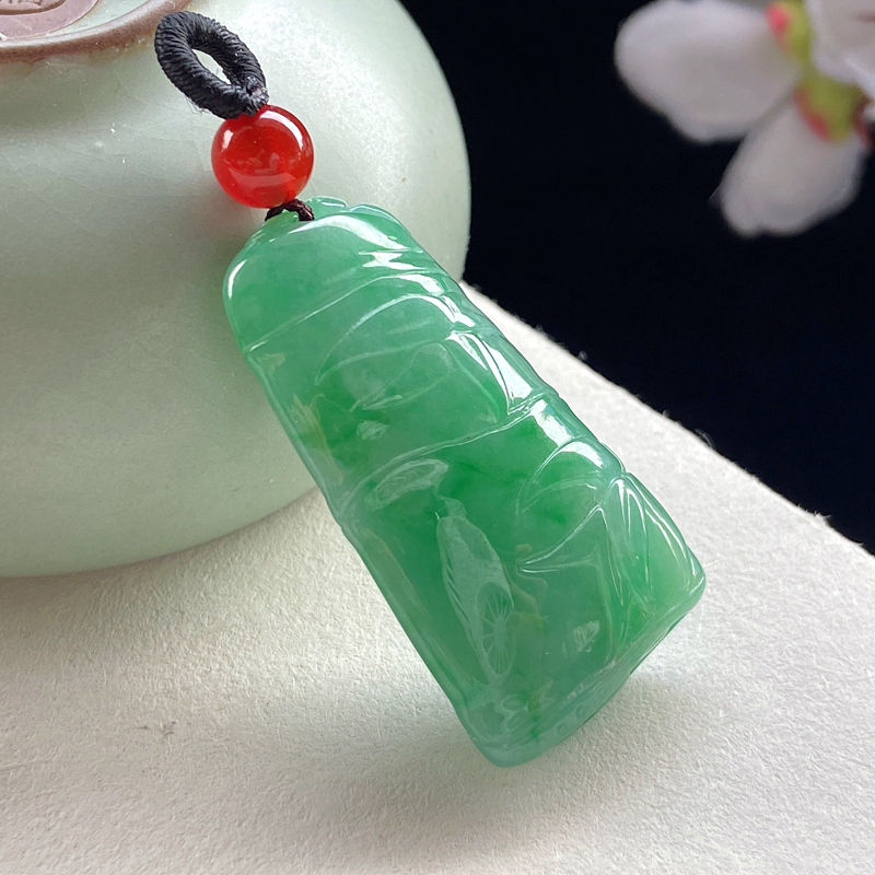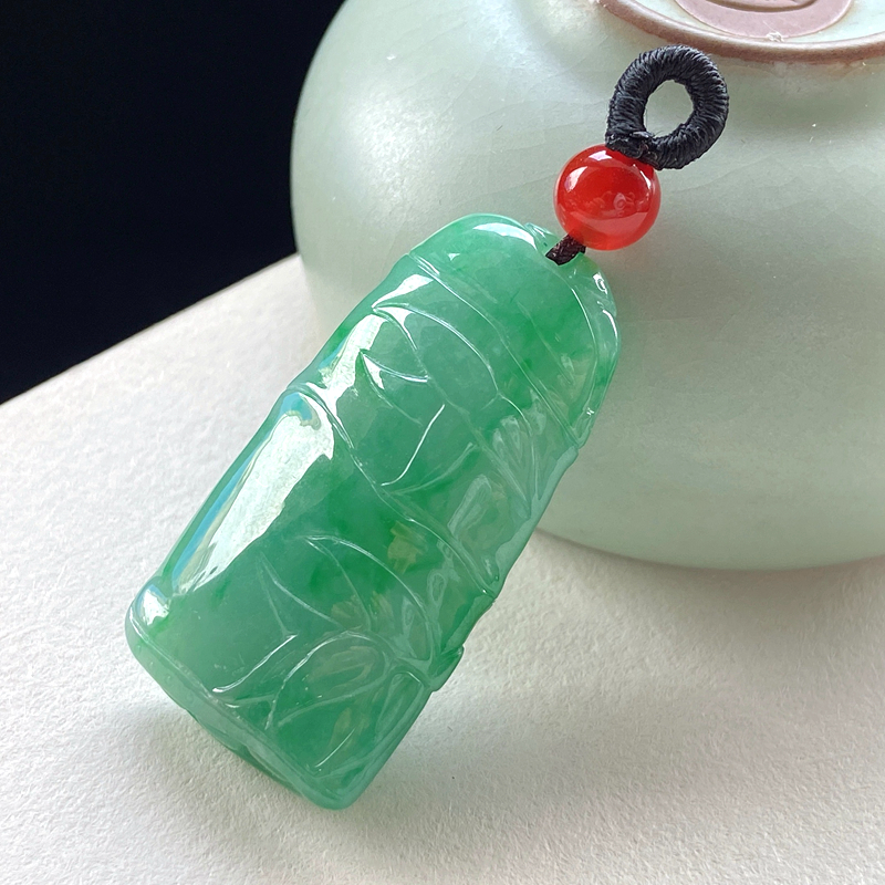 • [名  称] 糯冰种翠绿翡翠节节高升吊坠