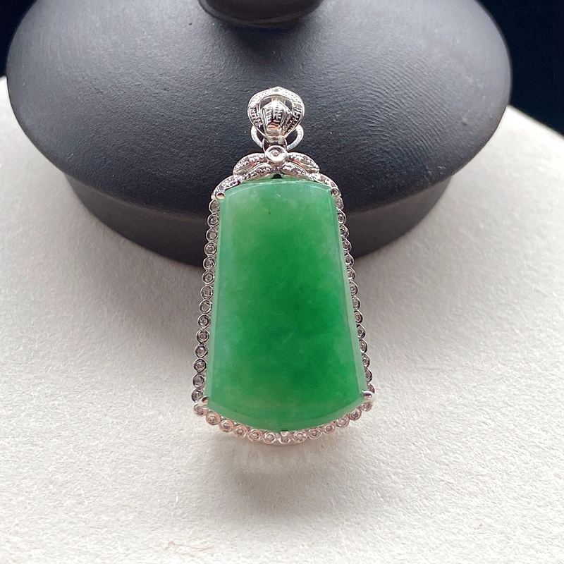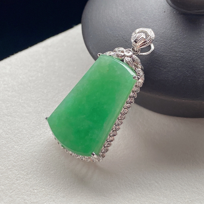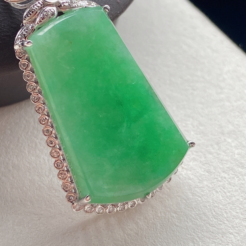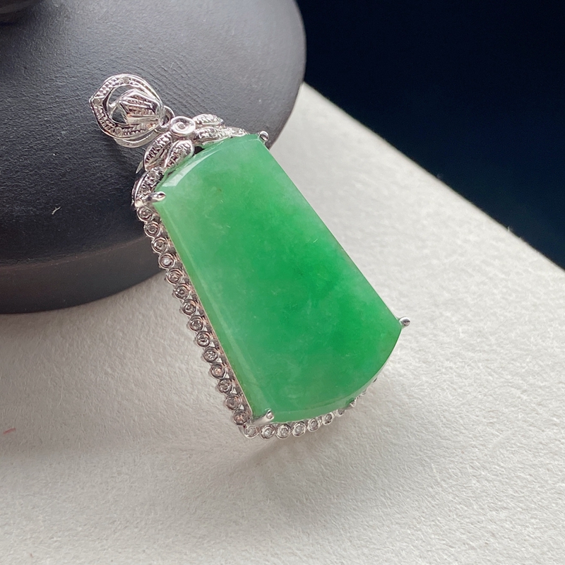• 18K糯冰种浅绿翡翠平安无事吊坠