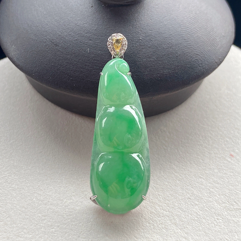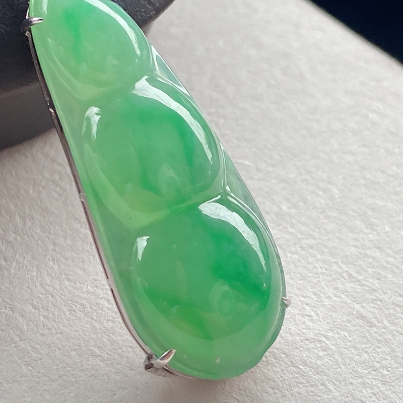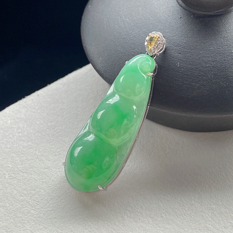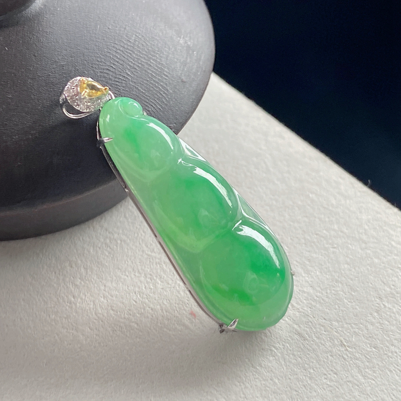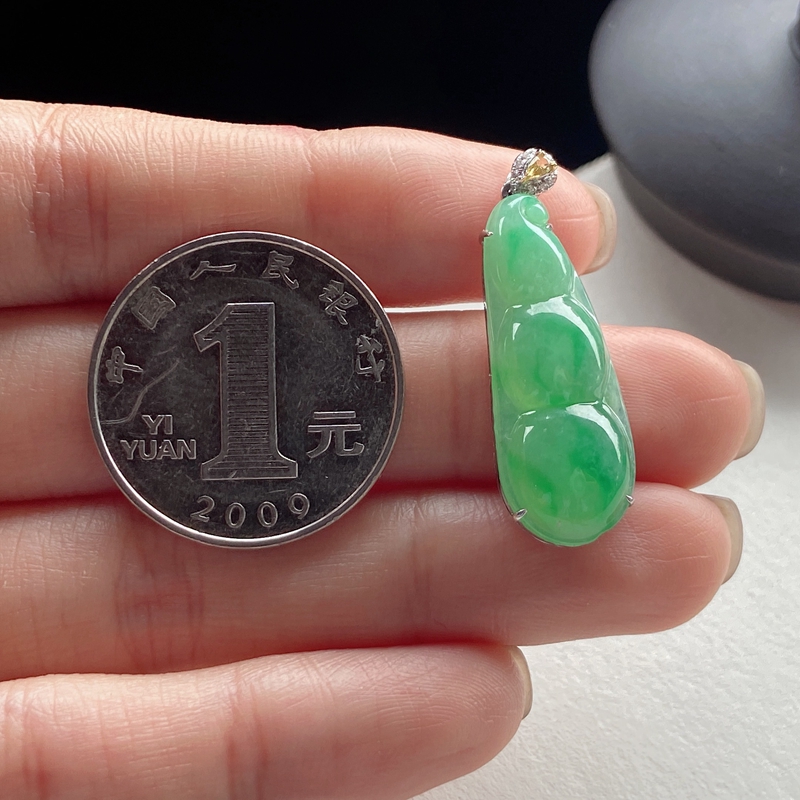 • 18K糯冰种飘翠翡翠福豆吊坠