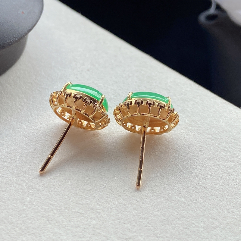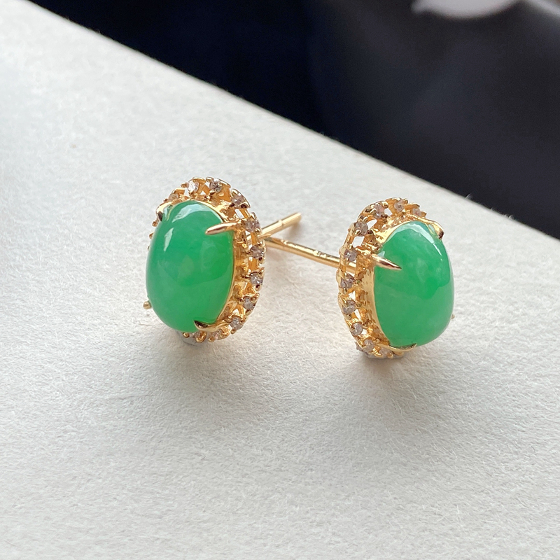 • [名  称] 18K糯冰种苹果绿翡翠耳钉