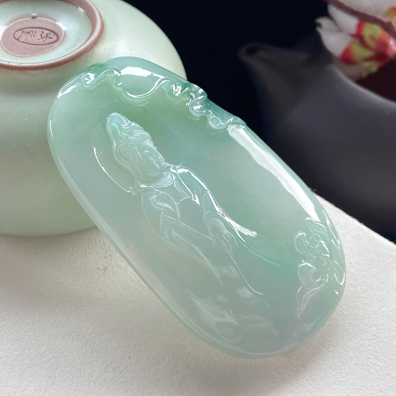 • [名  称] 糯冰种飘花翡翠观音吊坠