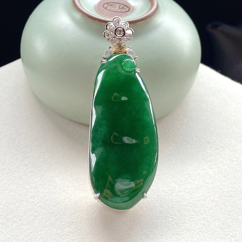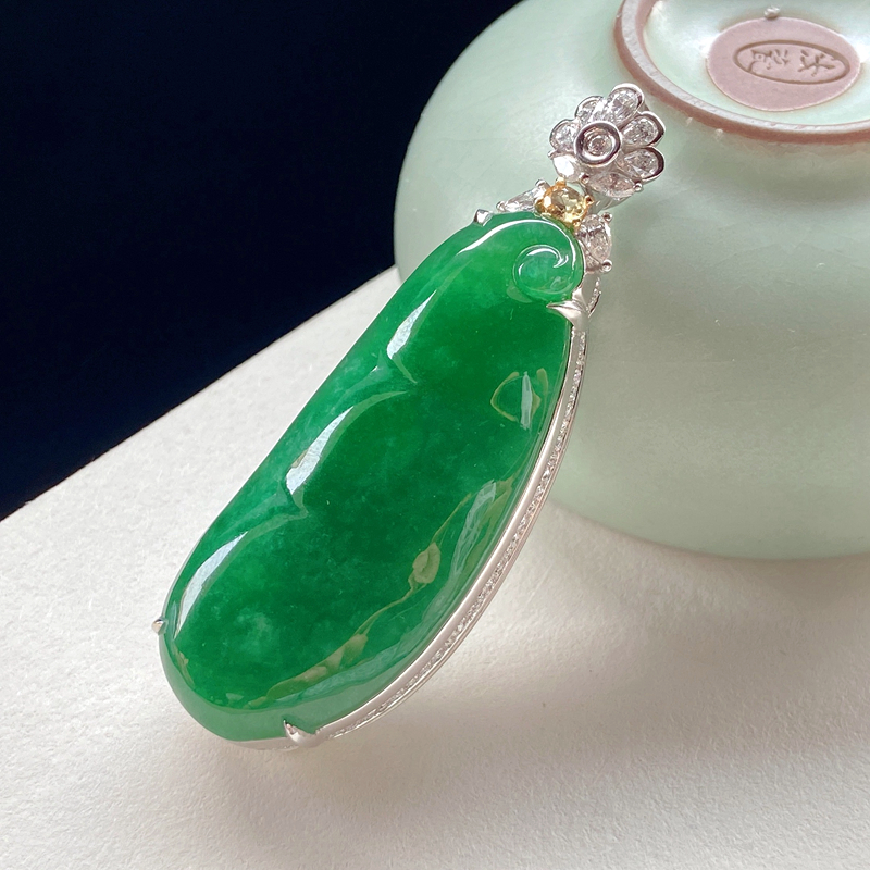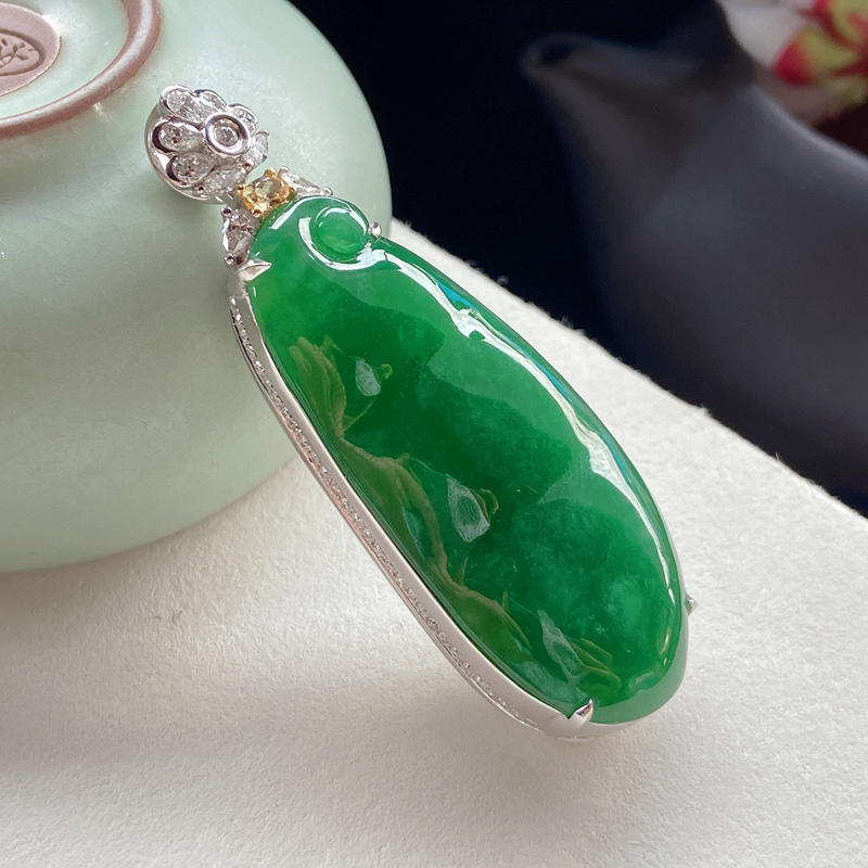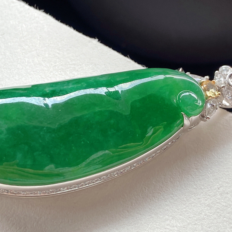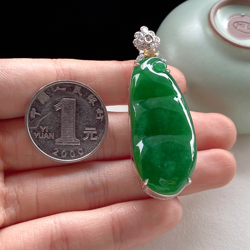 • [名  称] 18K糯冰种翠绿翡翠福豆吊坠