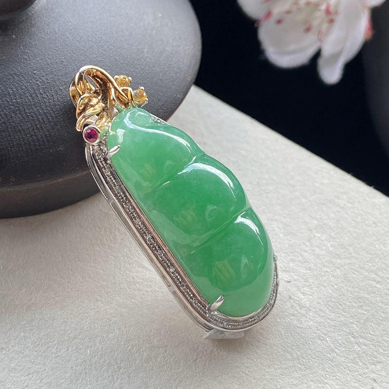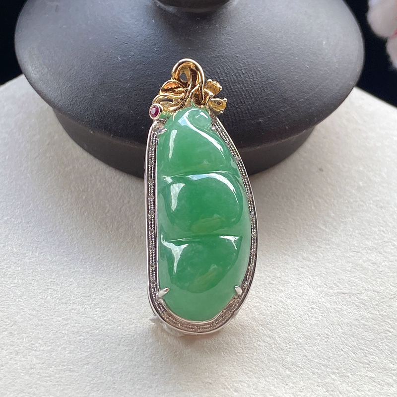 • [名  称] 18K糯冰种豆绿翡翠福豆吊坠