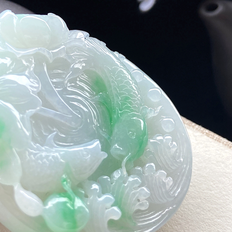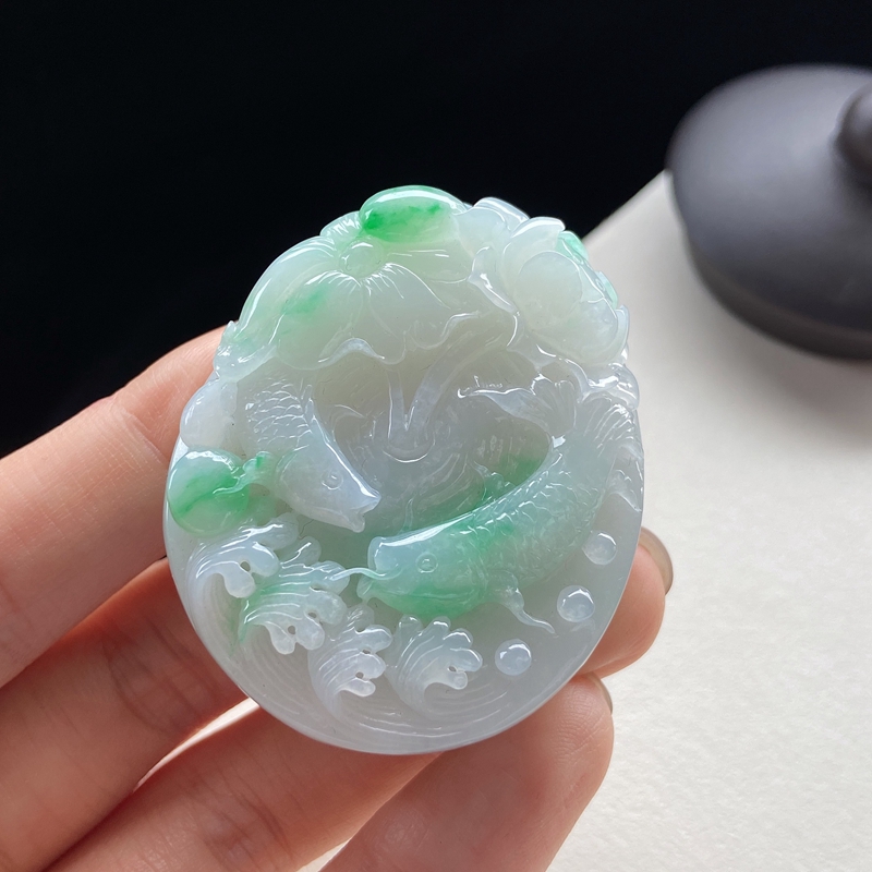 • [名  称] 糯冰种带色翡翠连年有余吊坠
