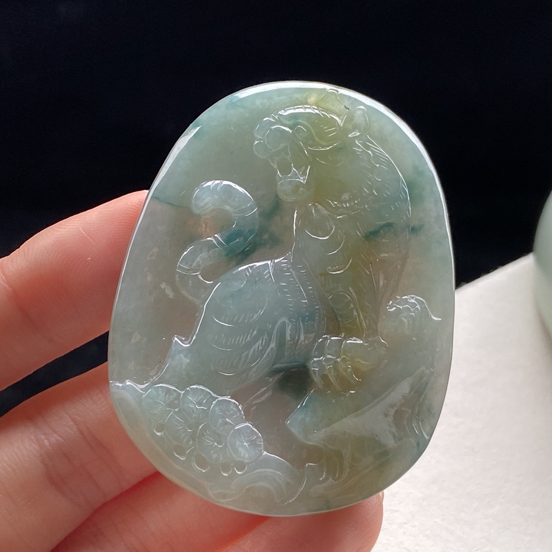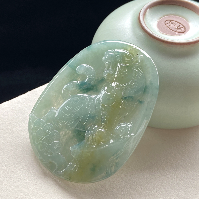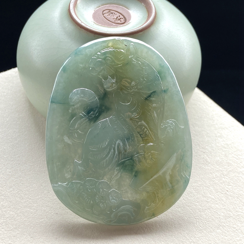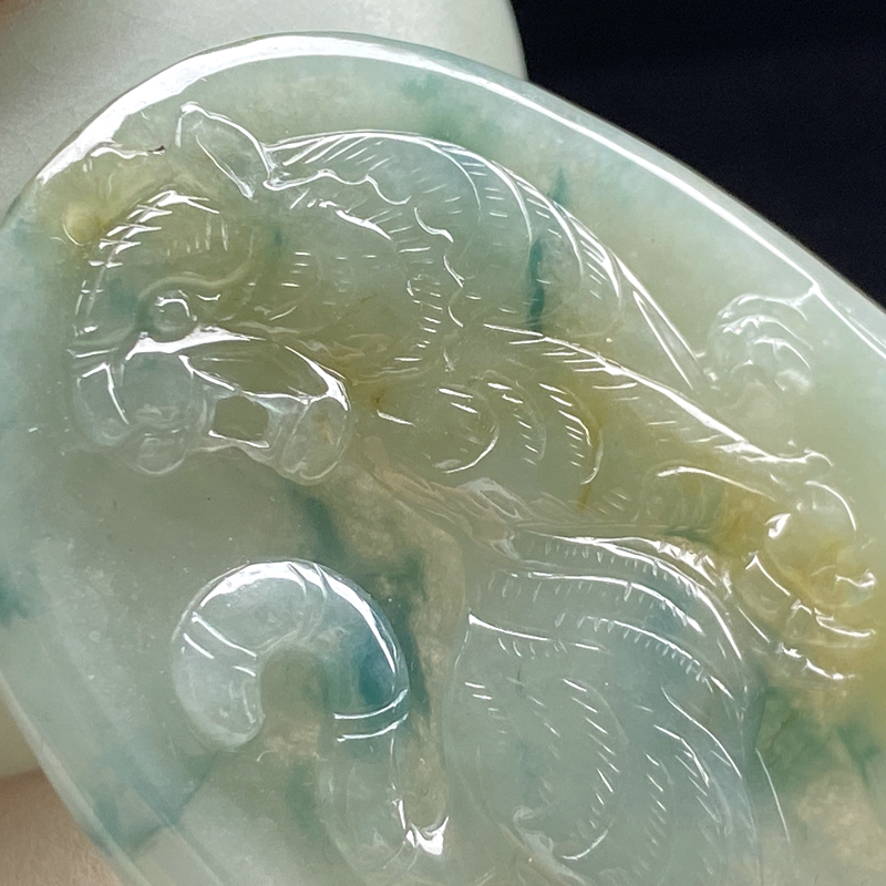 • 糯冰种飘花黄翡虎虎生威吊坠