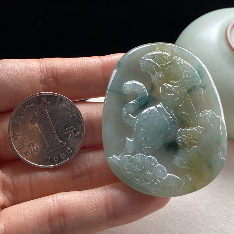 • [名  称] 糯冰种飘花黄翡虎虎生威吊坠