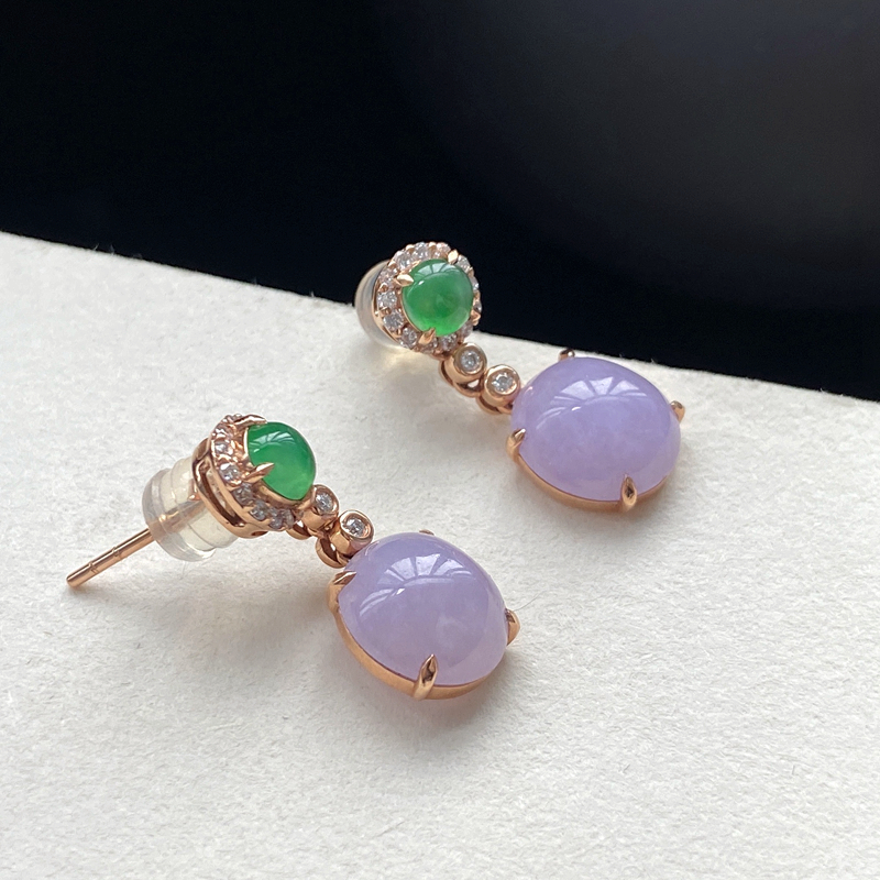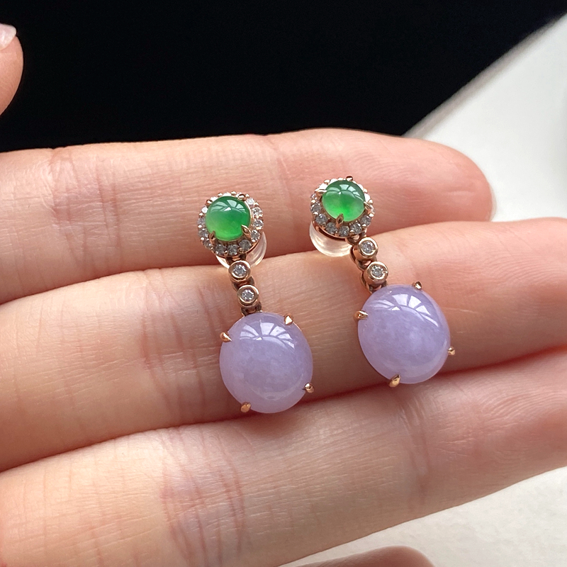 • 18K糯冰种紫罗兰翡翠耳坠