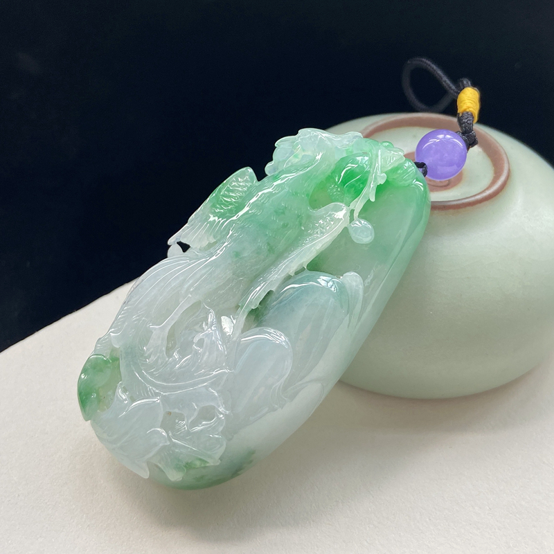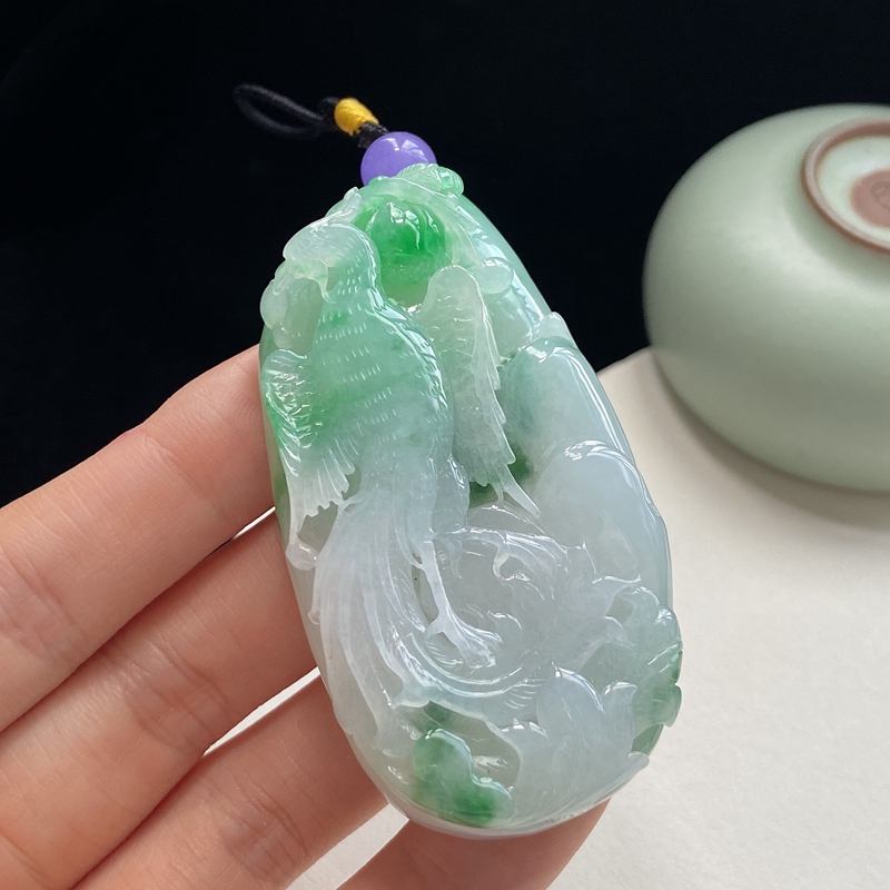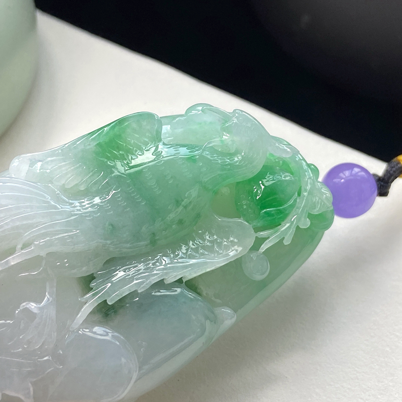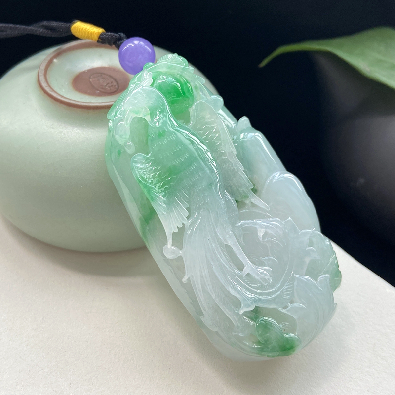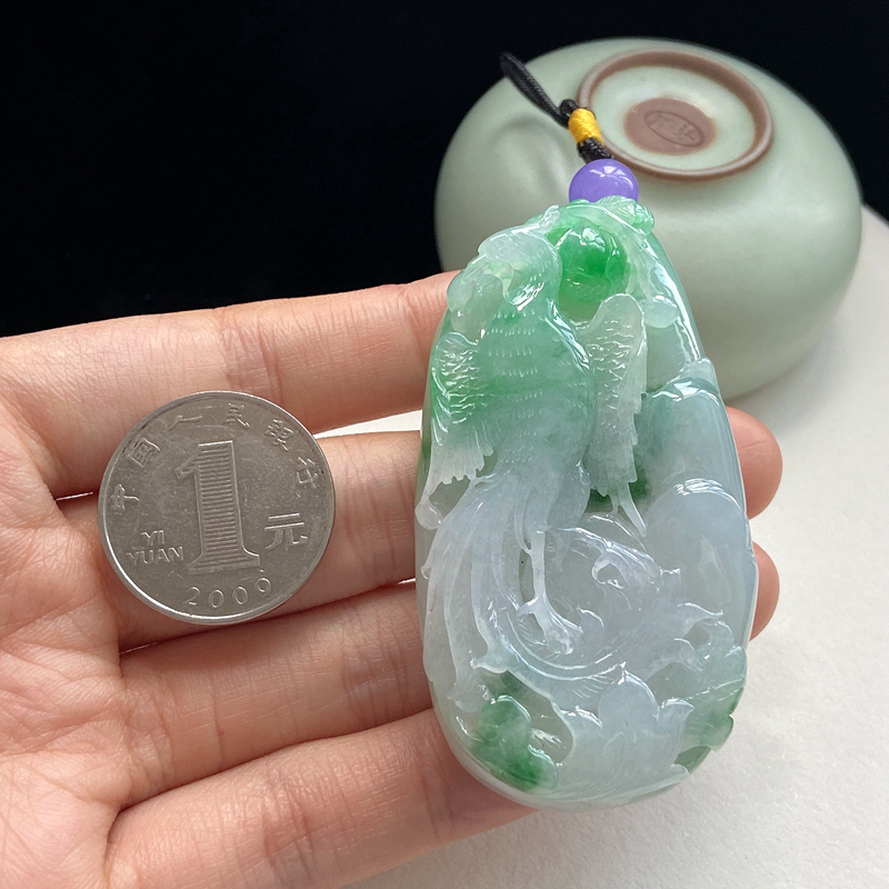 • [名  称] 糯冰种翠绿翡翠凤凰吊坠