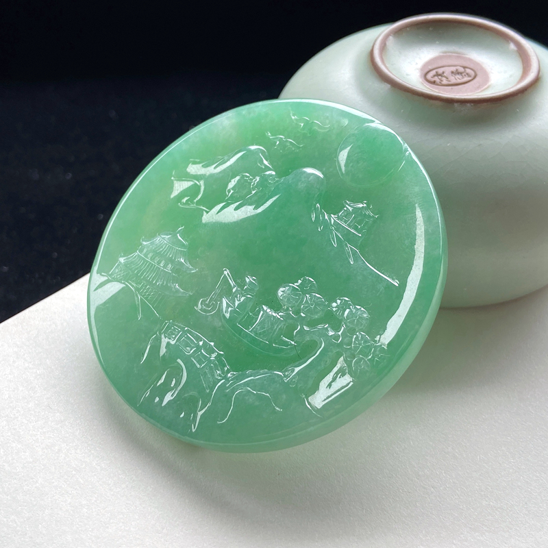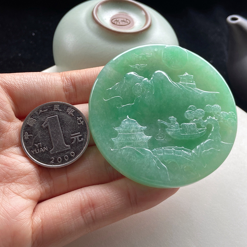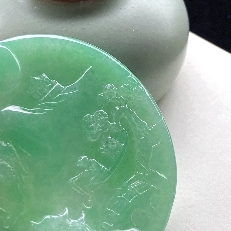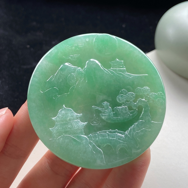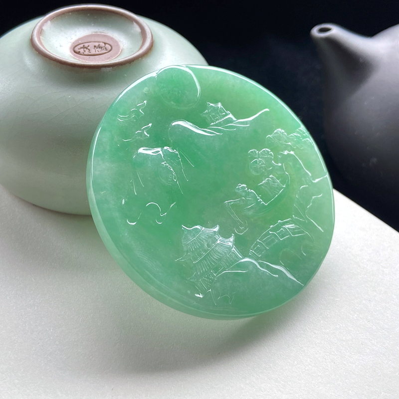 • [名  称] 糯冰种豆绿翡翠山水吊坠