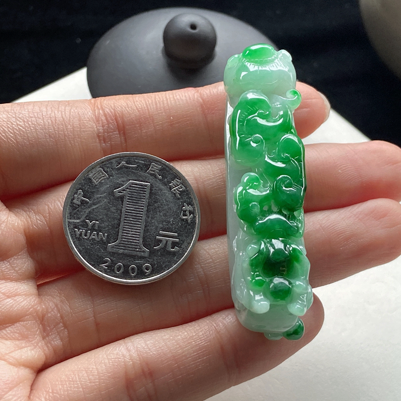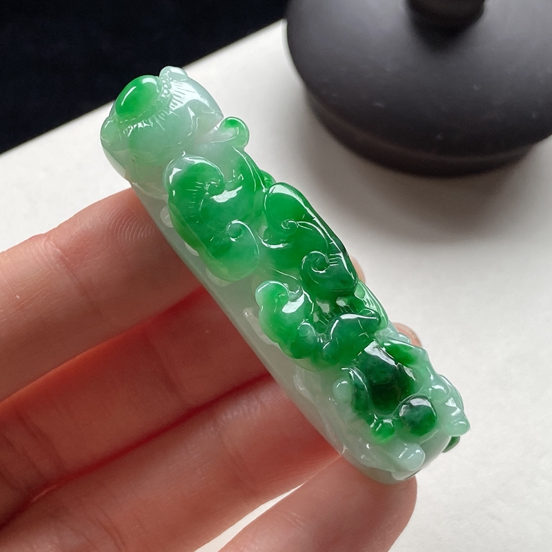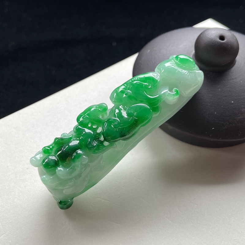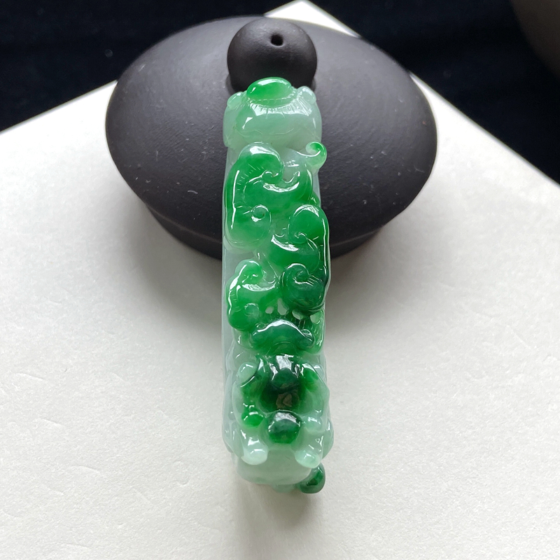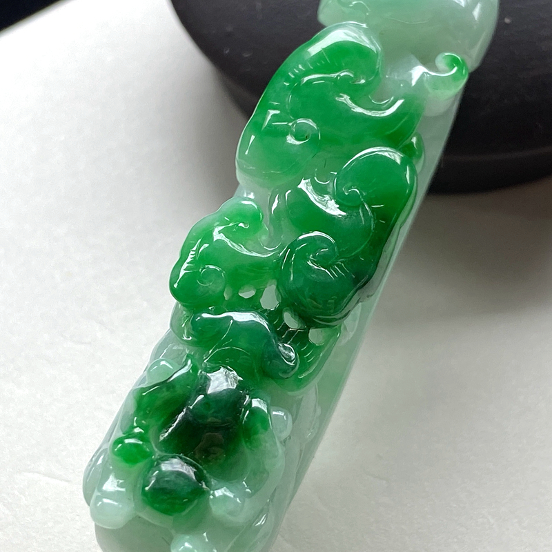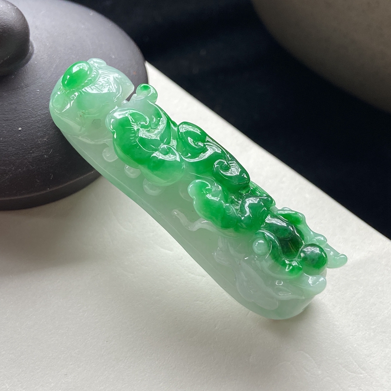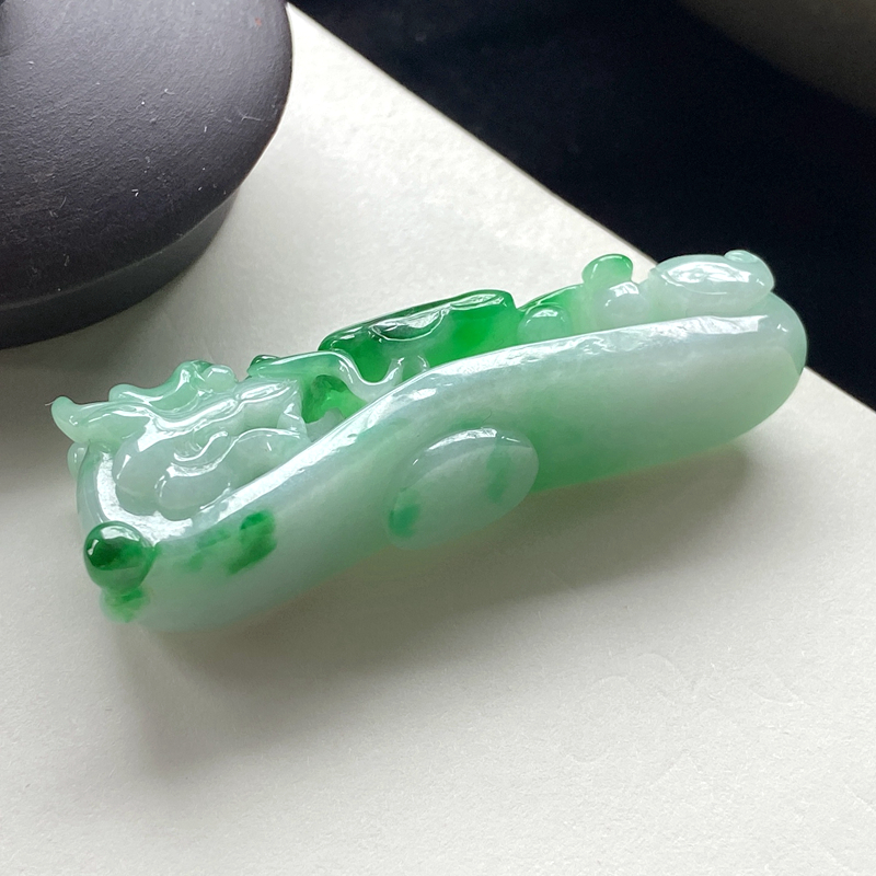 • [名  称] 糯冰种翠绿翡翠龙勾吊坠