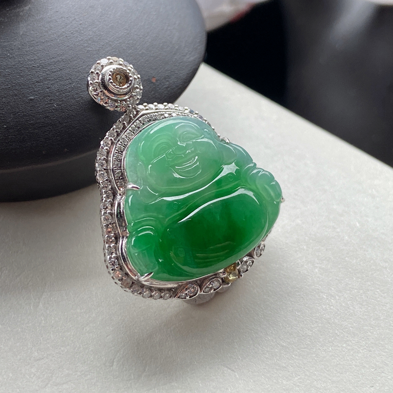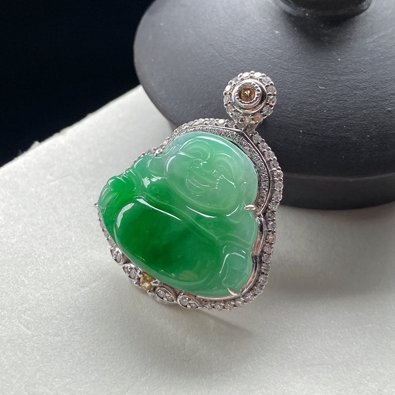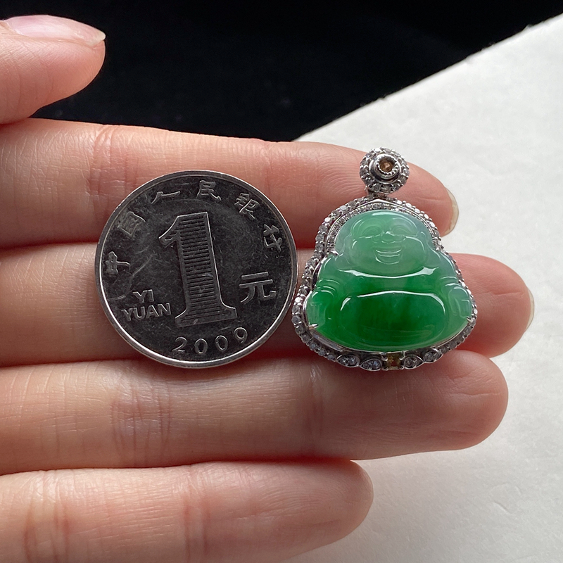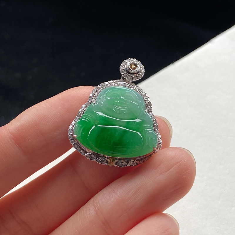 • [名  称] 18K糯冰种翠绿翡翠弥勒佛吊坠