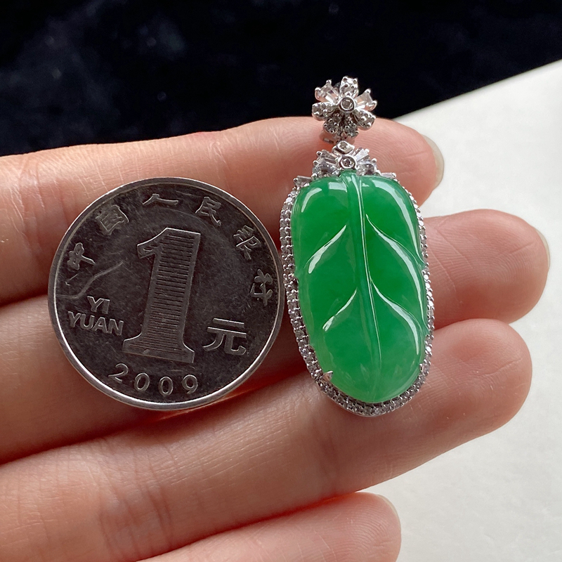 • [名  称] 18K糯冰种苹果绿翡翠金枝玉叶吊坠