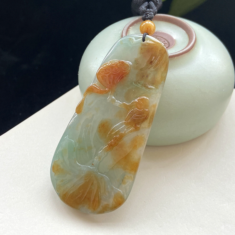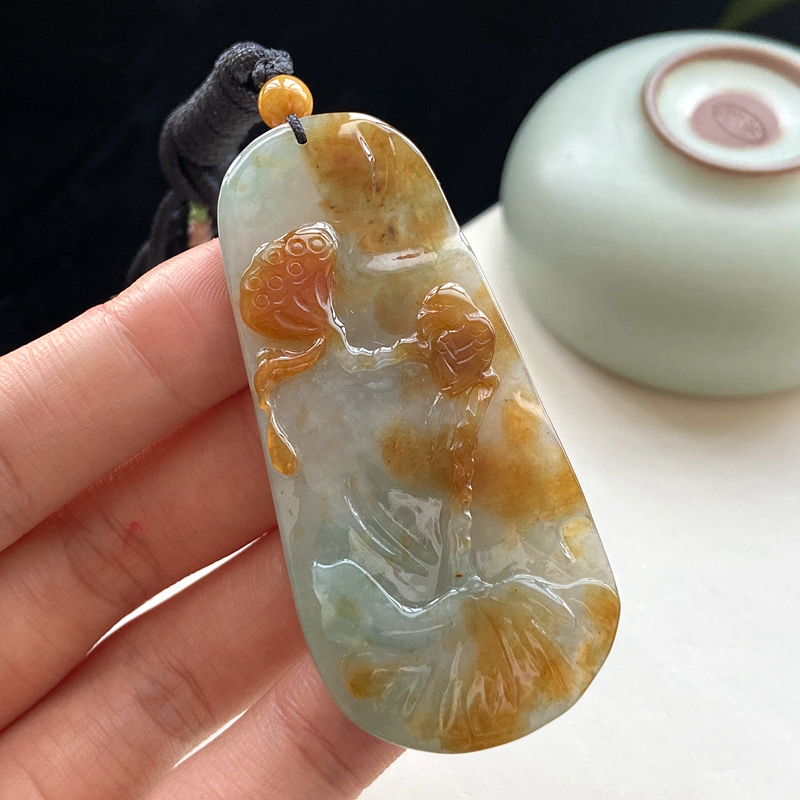 • 糯冰种黄翡和和美美吊坠