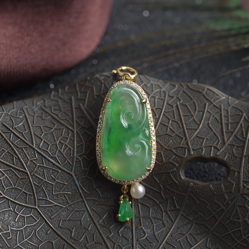 • [名  称] 18K糯冰种飘翠翡翠如意吊坠