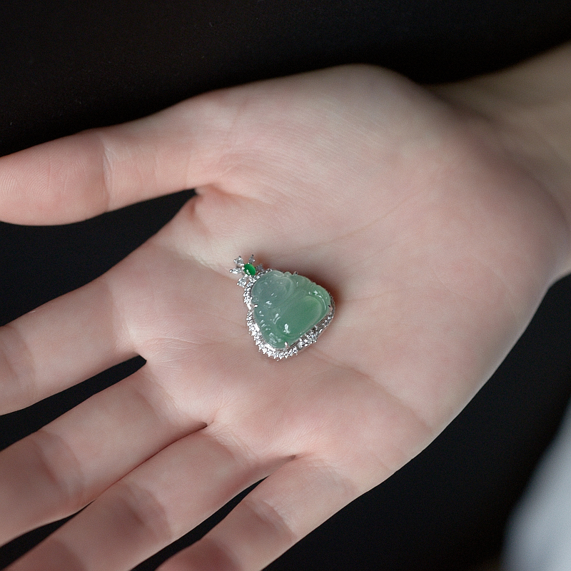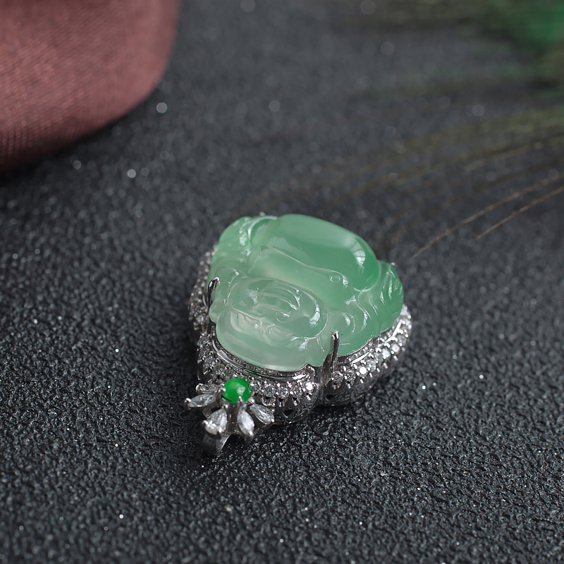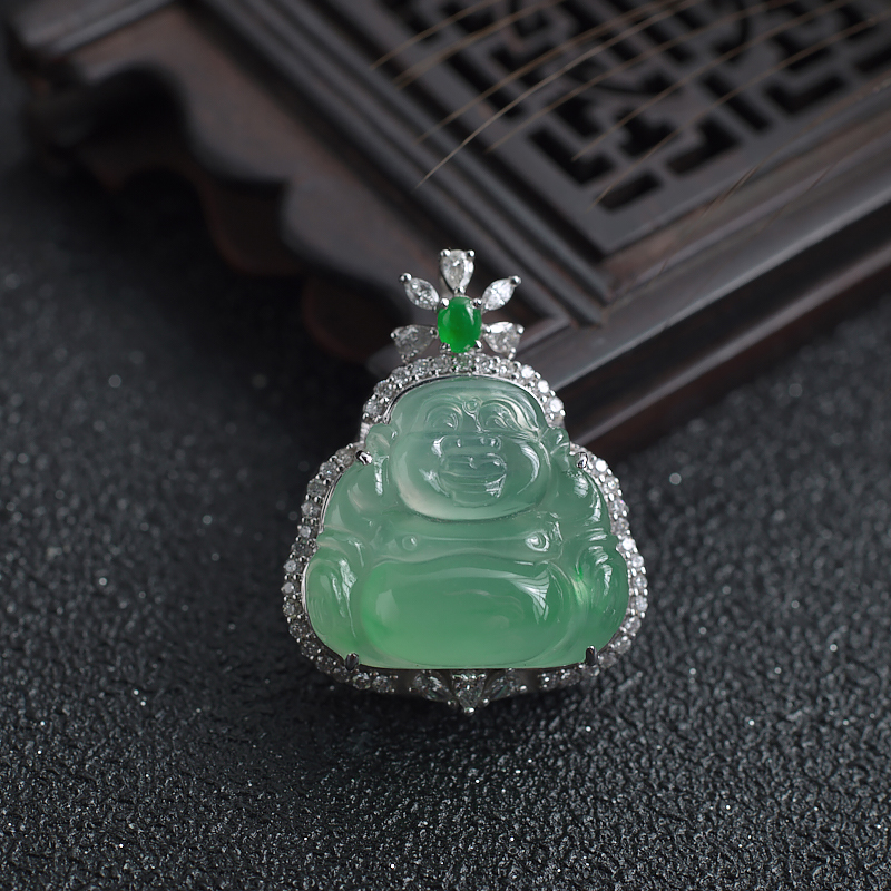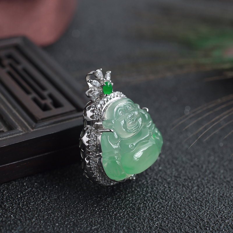 • [名  称] 18K糯冰种浅绿翡翠弥勒佛吊坠