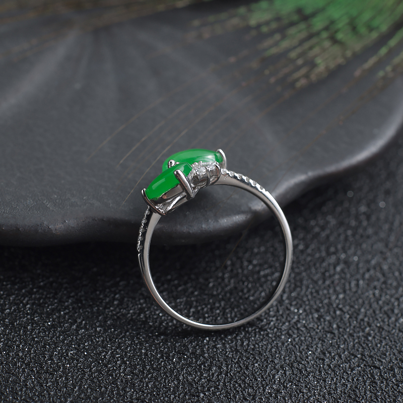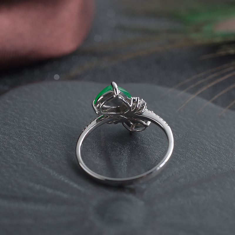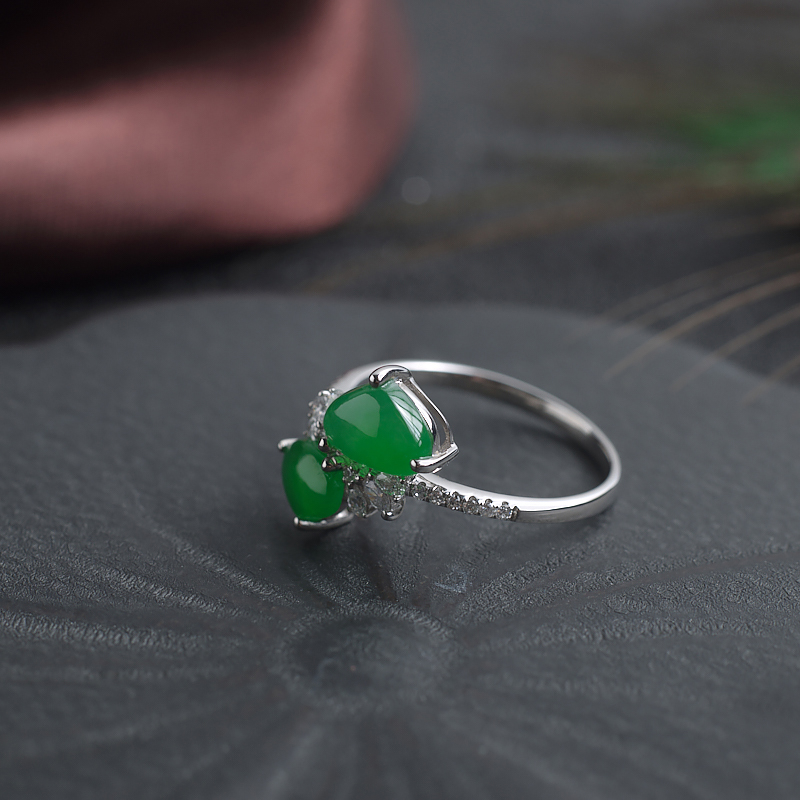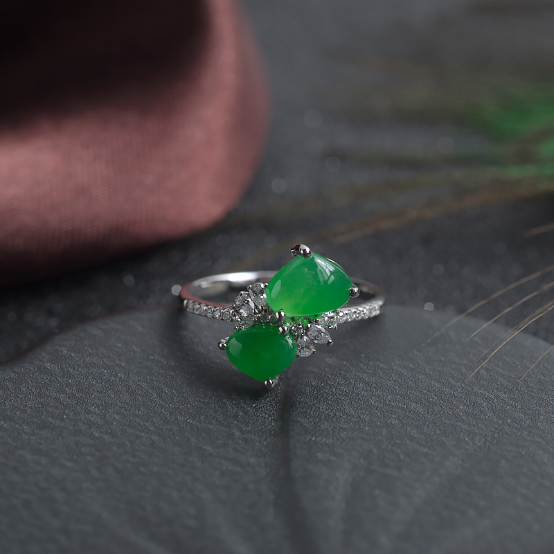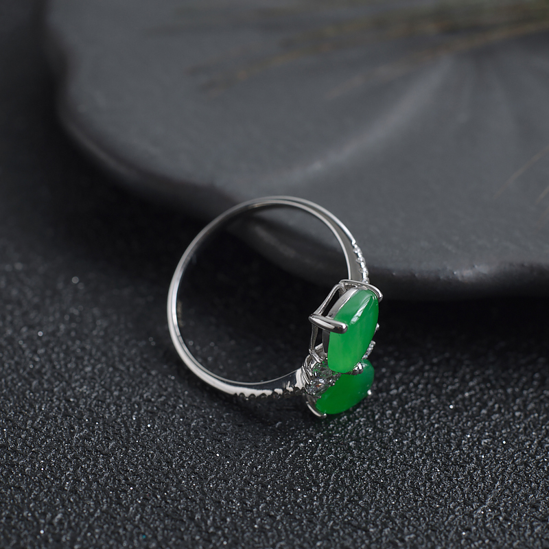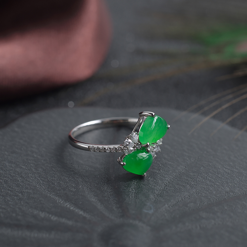 • 18K糯冰种阳绿翡翠戒指