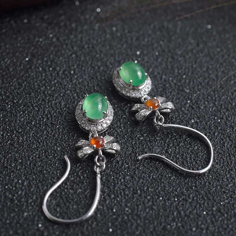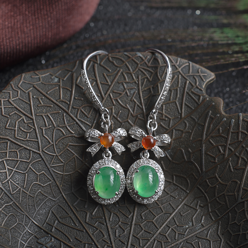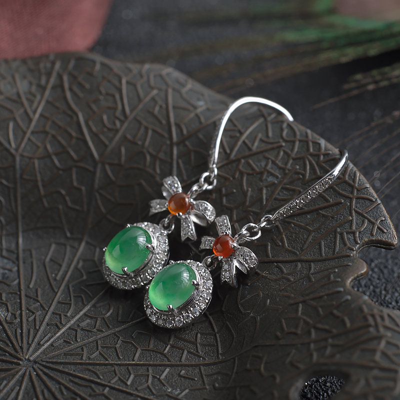 • 18K糯冰种苹果绿翡翠耳环
