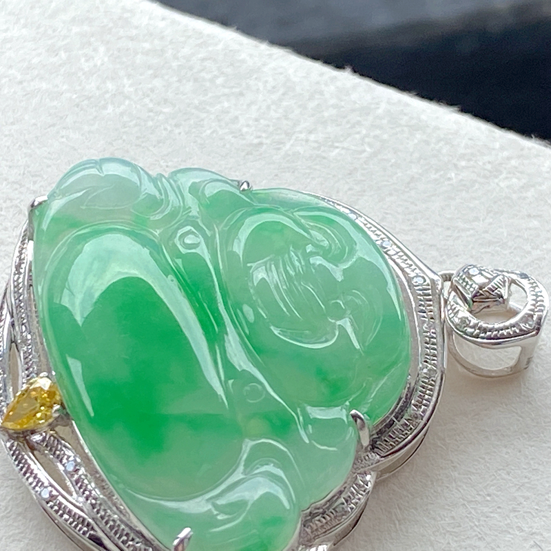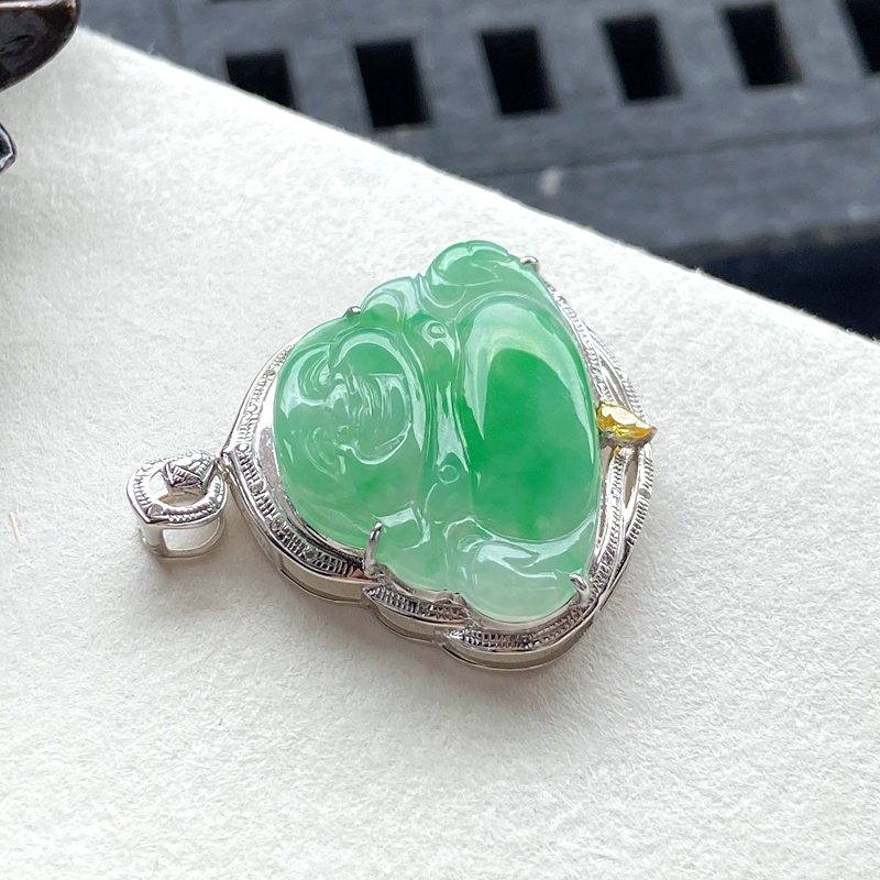 • [名  称] 18K糯冰种阳绿翡翠弥勒佛吊坠