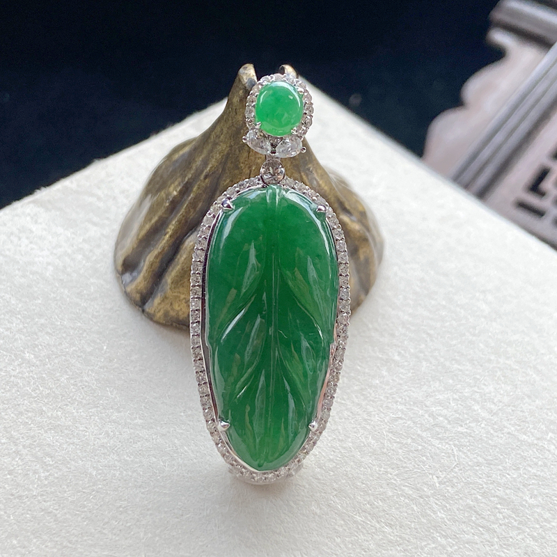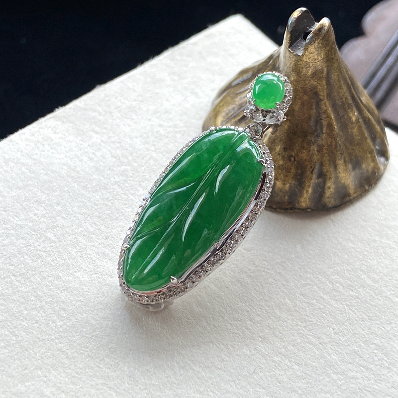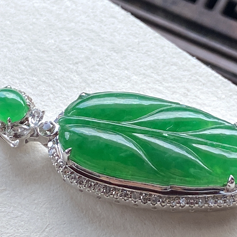 • 18K糯冰种翠绿翡翠金枝玉叶吊坠
