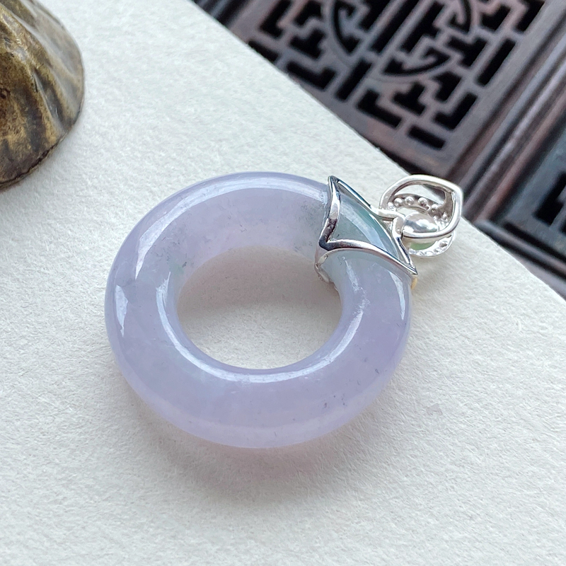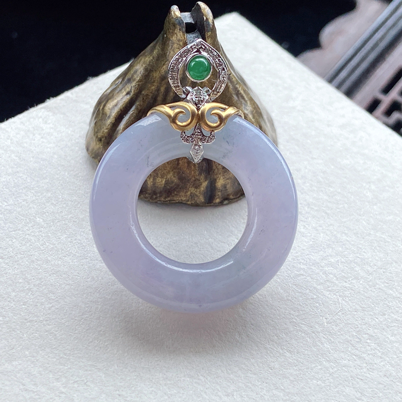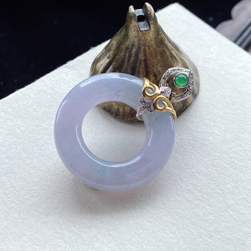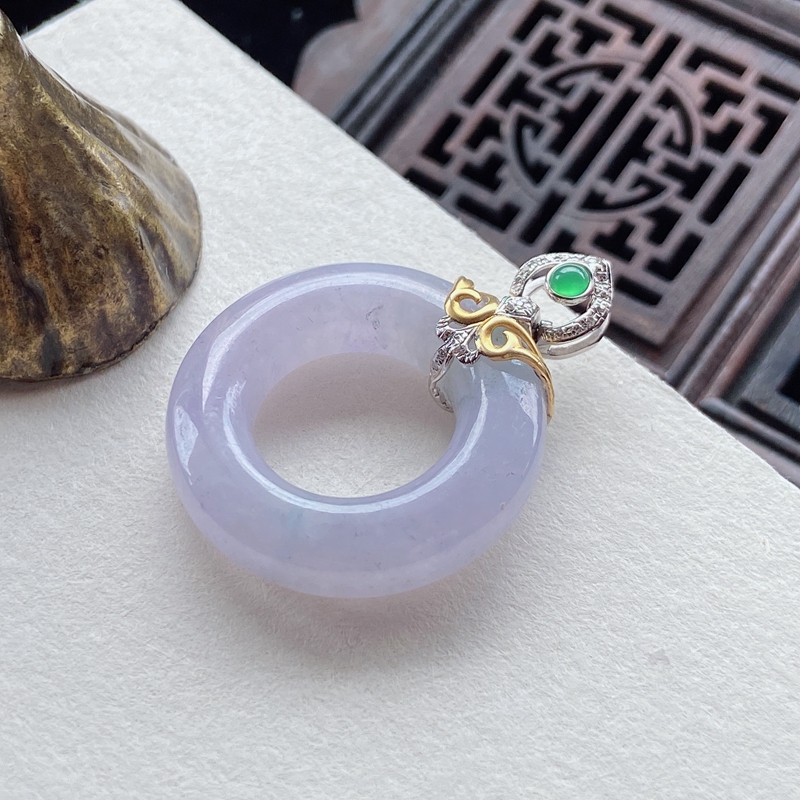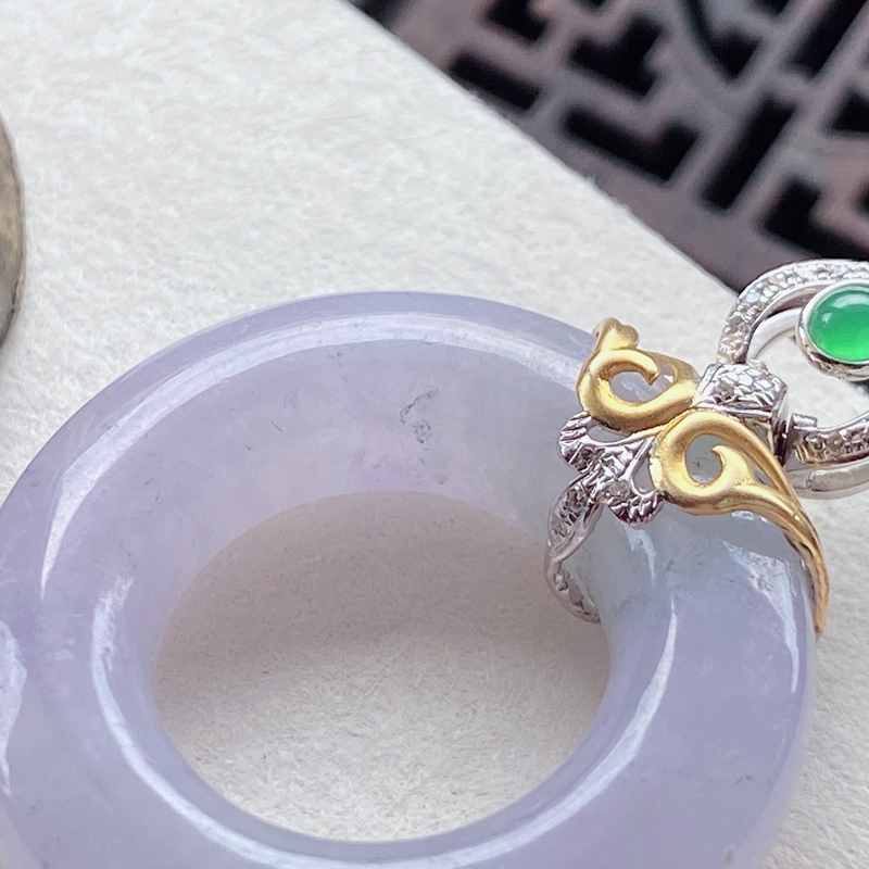 • 18K糯冰种紫罗兰翡翠平安环吊坠