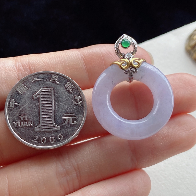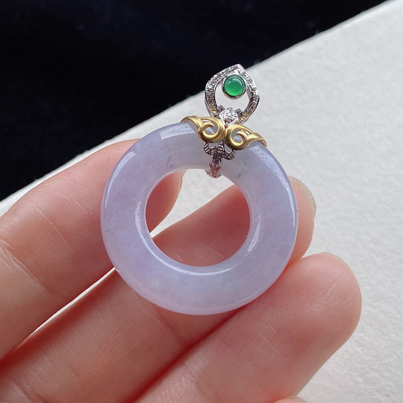 • [名  称] 18K糯冰种紫罗兰翡翠平安环吊坠